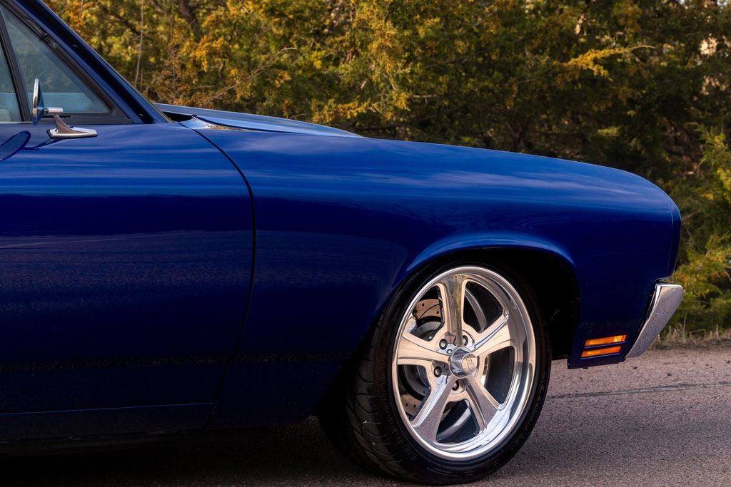 Deep royal blue paint executed to show quality over a black interior. 72 miles on the odometer. If you're looking for a turn-key pro-touring El Camino that doesn't need a single thing done to it this is the one.