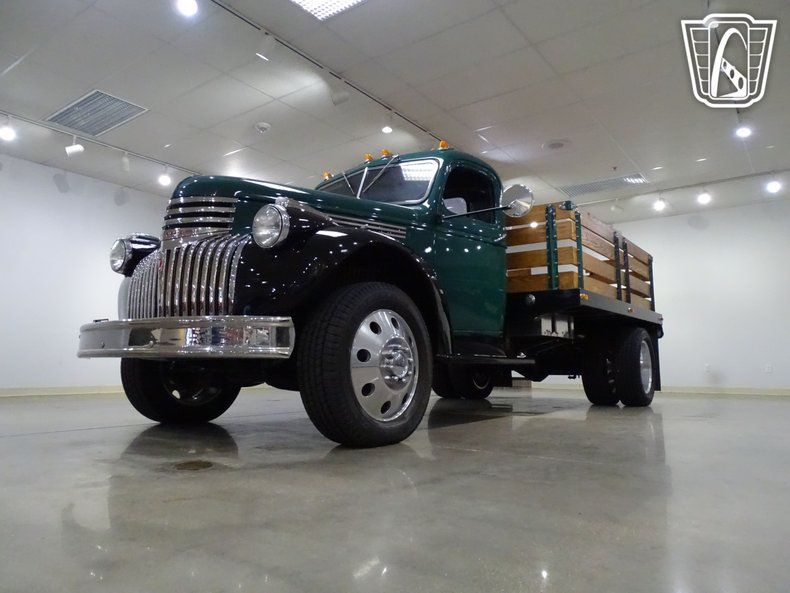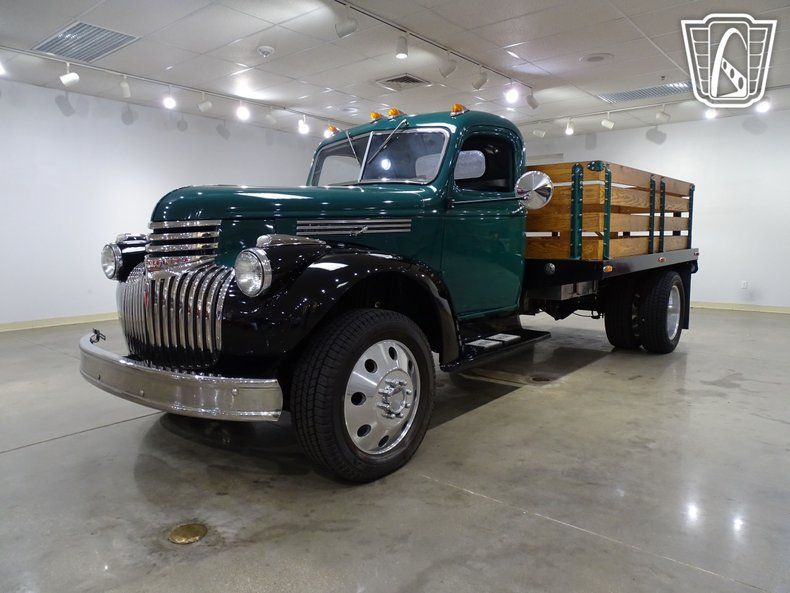Step back in time and embrace the charm of classic motoring with this stunning 1946 Chevrolet Platform Truck. Dressed in a timeless green exterior, this truck is a rolling piece of history that blends vintage style with modern performance. Slide into the sleek black interior bucket seats, and you'll instantly be transported to an era where craftsmanship and character were king.