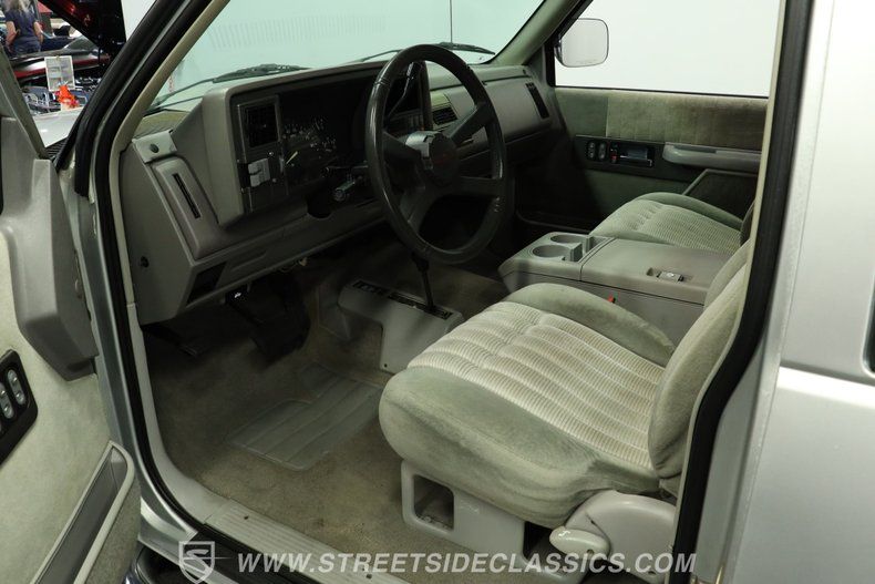 Considering this Chevy debuted well over three decades ago, its two-tone gray cloth upholstery presents nicely. The front buckets have retained their original shape, and they bracket a sizable center console that provides some welcome lockable interior storage space, as well as a pair of cupholders. The surrounding surfaces still have their original deep pigmentation, and the dash features a clean pad and clear, readable gauges. You'll find an array of comfort and convenience options on hand that come via this K1500's upper tier Silverado status, including that previously mentioned cloth upholstery, power windows and door locks, cruise control, and a tilt column. All the components of the factory air conditioning system are present and accounted for, and the system blows strong and accommodates modern R134a refrigerant but could use a little attention to help it return to top form.