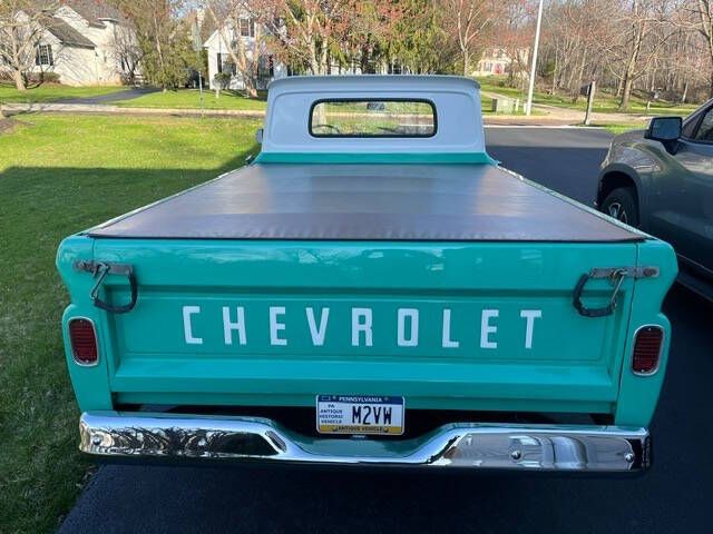 Erics Muscle Cars is proud to offer this 1961 Chevy C-10 Apache straight side. Original Drivetrain is an inline 6 cylinder 235 cu in engine and a three speed column shift trans. Mileage right now id 60,554. Owner installed front disc brakes, a Clifford 2bbl carburetor and matching intake and exhaust manifolds, new seatbelts, new fuel pump as well as a new stainless exhaust and muffler.Owner installed the tonneau cover. The original 6-lug 15 x 5 wheels come with the purchase as well as the original front drum brakes, spindles, etc. Owner added all new matching wheels on the truck because the front disc calipers needed more clearance. There is a spare as well. The truck has (5) new wheels and tires. A fun driver that gets thumbs up wherever it goes.