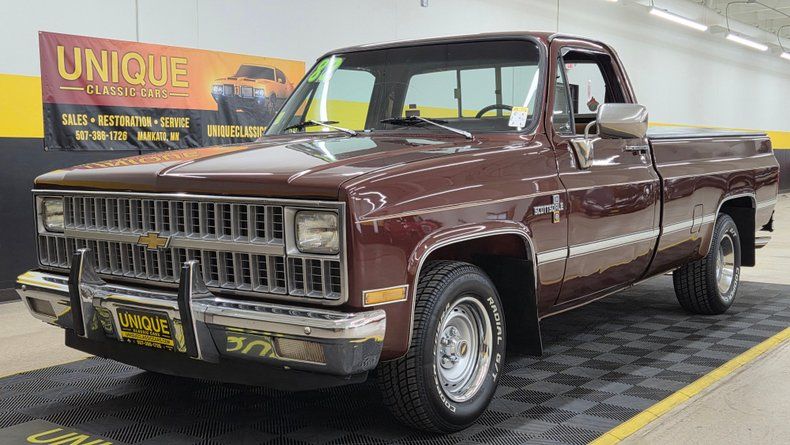 The 1982 Chevrolet C10 Scottsdale featuring mahogany metallic paint.