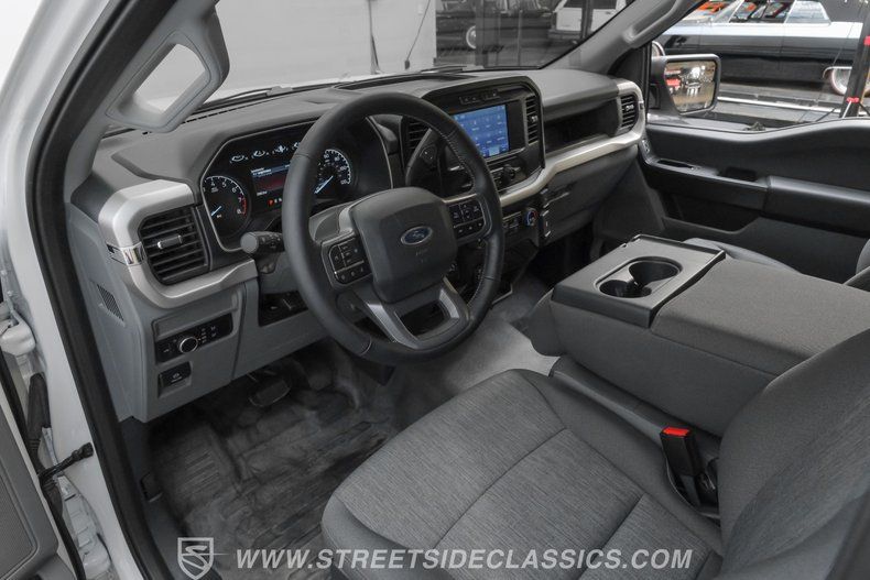 Feel the rush of modern muscle and classic ruggedness in this 2023 Ford F-150 XL Supercharged-a truck built to make a statement without shouting. Finished in factory Oxford White with black trim accents, it delivers a clean, aggressive look that's amplified by a factory-style lowered stance and 22-inch black 6 spoke wheels wrapped in 285/40R22 Nitto tires. The result is a sleeper profile with a commanding road presence. Practical upgrades like a four-fold hard tonneau cover and spray-in bedliner ensure everyday usability, while the supercharged performance beneath the surface makes this F 150 anything but ordinary.