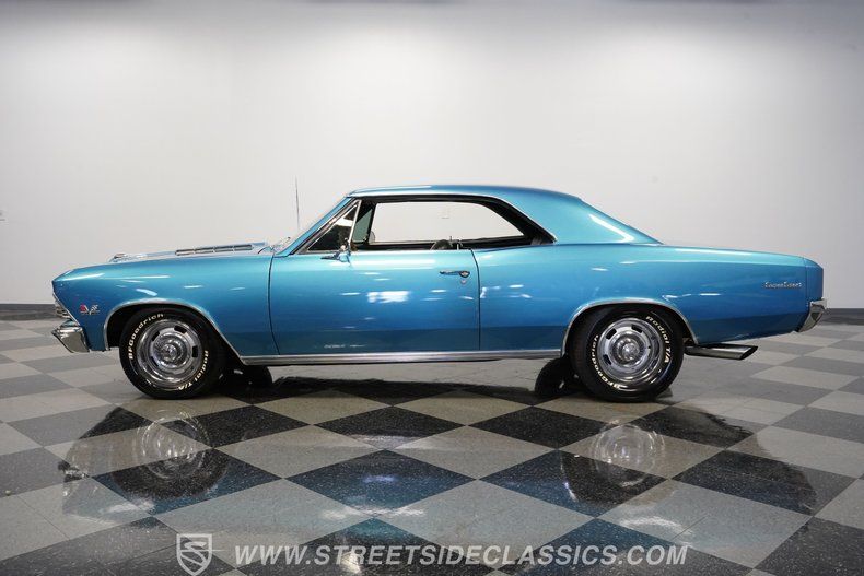 This beautiful 1966 Chevrolet Chevelle SS 454 rides on a lowered factory-style suspension, upgraded with four-wheel QA1 coilovers and rear tubular control arms. Beyond that, this SS sports power brakes, including a Wilwood front disc brake system, to complete its fully restored package. So, the next sunny day that comes along, all you need to do is fire this big block up, bring the family, or just the dog, or just your own thoughts, and blast off down the open road, able to row your own gears, with your only worry being where to stop for dinner. But, to fulfill that fantasy of owning one of the most renowned and respected muscle cars from the Golden Age, first you have to pick up the phone, so don't wait... call today!