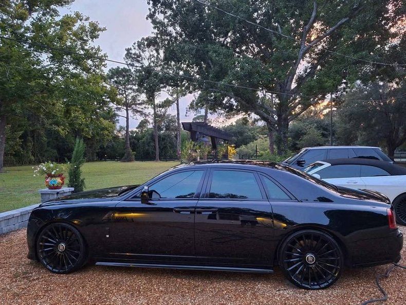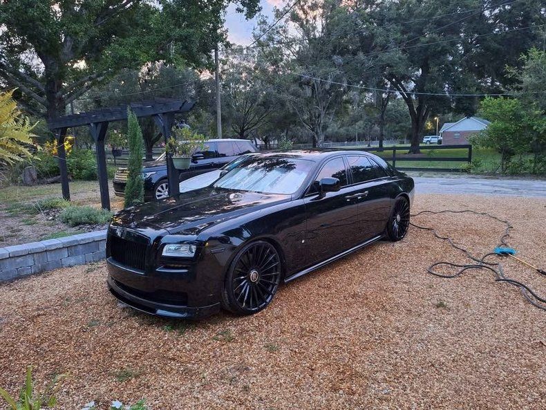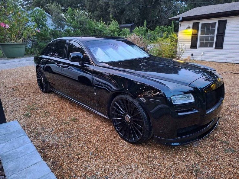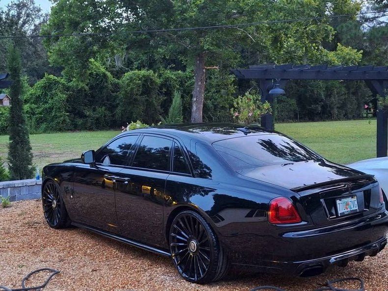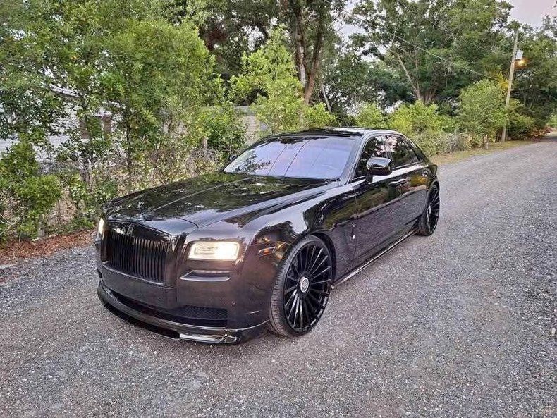 This 2010 Rolls-Royce Ghost presents extremely well with a black exterior and a tan leather interior. The exterior has been fully de-chromed for a sleek custom appearance and is fitted with a full carbon body kit and 24-inch custom rims that give the car a very aggressive stance. It also benefits from a ceramic coating applied in 2024 with a 5-year coating and has been garage kept. Inside, the tan leather cabin shows beautifully with rich woodgrain trim throughout the dashboard, center console, and door panels. The car is equipped with new tires, a new battery, and has had a fully recent service completed. This Ghost is an eye-catching luxury sedan with a strong presence and a highly customized look.
