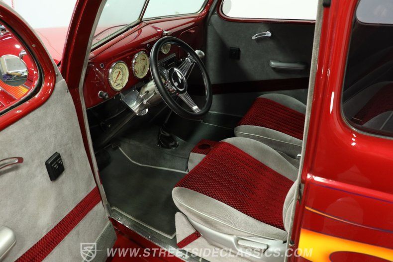With their eye-catching architecture and substantial historical significance, pre-WWII Ford Coupes have long been a coveted foundation for the handiwork of countless classic car enthusiasts, and this 1937 shows the results of that handiwork done right. With its all-steel body dressed in red paint that holds a nice shine and wears painted flames extending backward from its front end, this is a classic that can't help but attract attention. It has an appealing, low-slung stance that leaves enough ground clearance for driving in everyday conditions, enhanced by a set of staggered 15"/17" American Racing wheels. Just as importantly, if not more so, its well-configured drivetrain, along with some top-tier mechanical components, makes this venerable cruiser every bit as fun to drive as it is to look at.