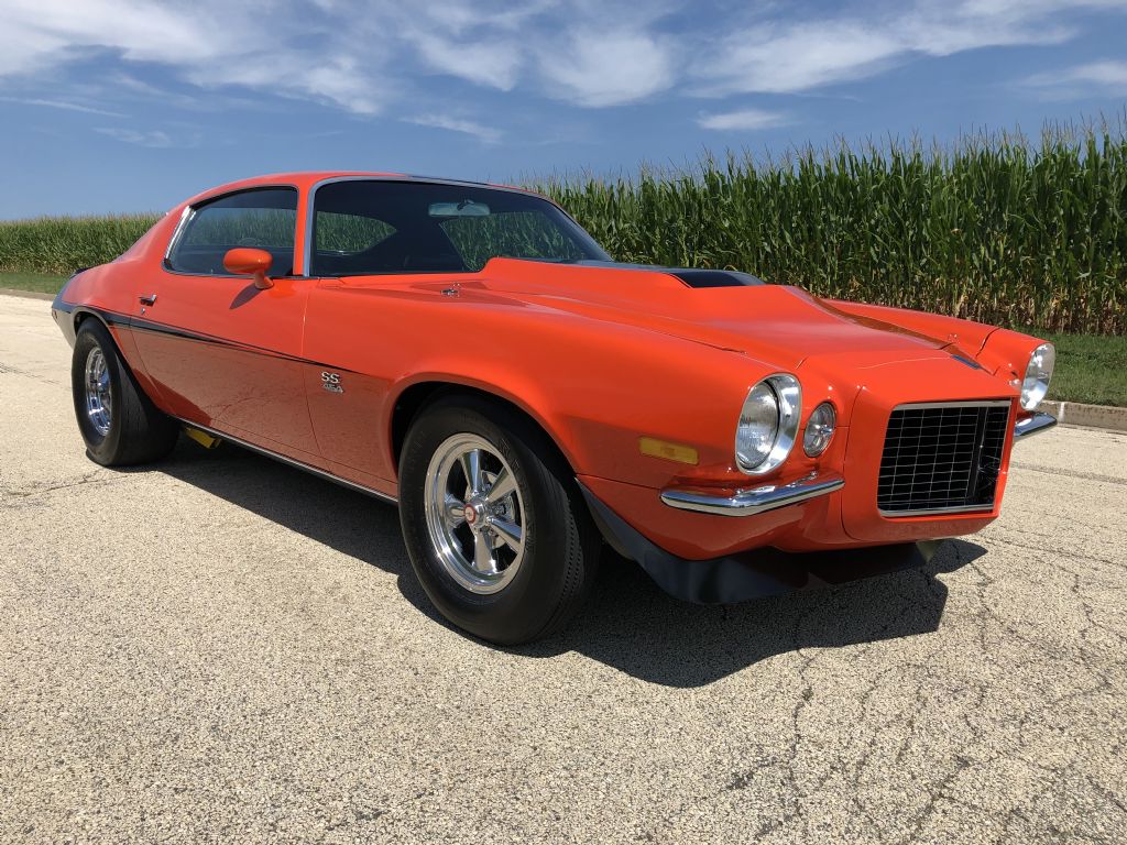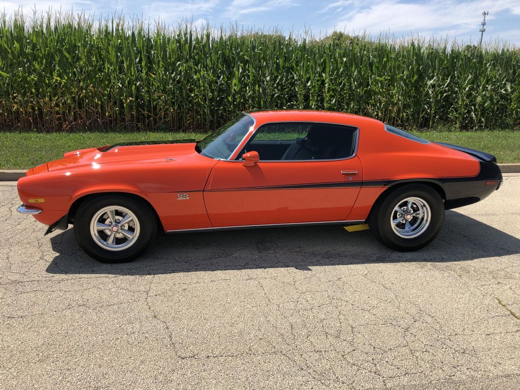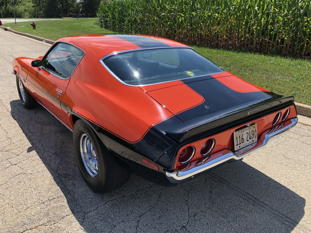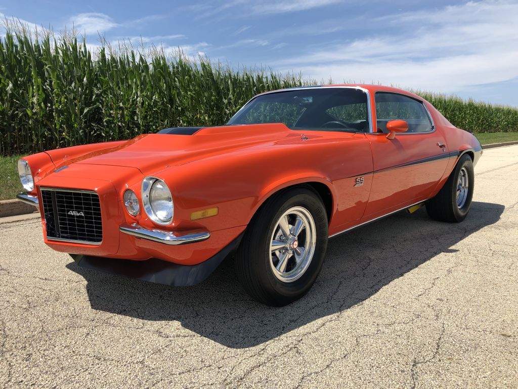 1970 Camaro Baldwin-Motion Clone. California car with solid original sheetmetal, rare factory hugger orange with black interior, aluminum head 454, 4-speed, 12 bolt, many vintage day two speed parts, secret auto sound system, rear window defogger, same owner for last 21 years.