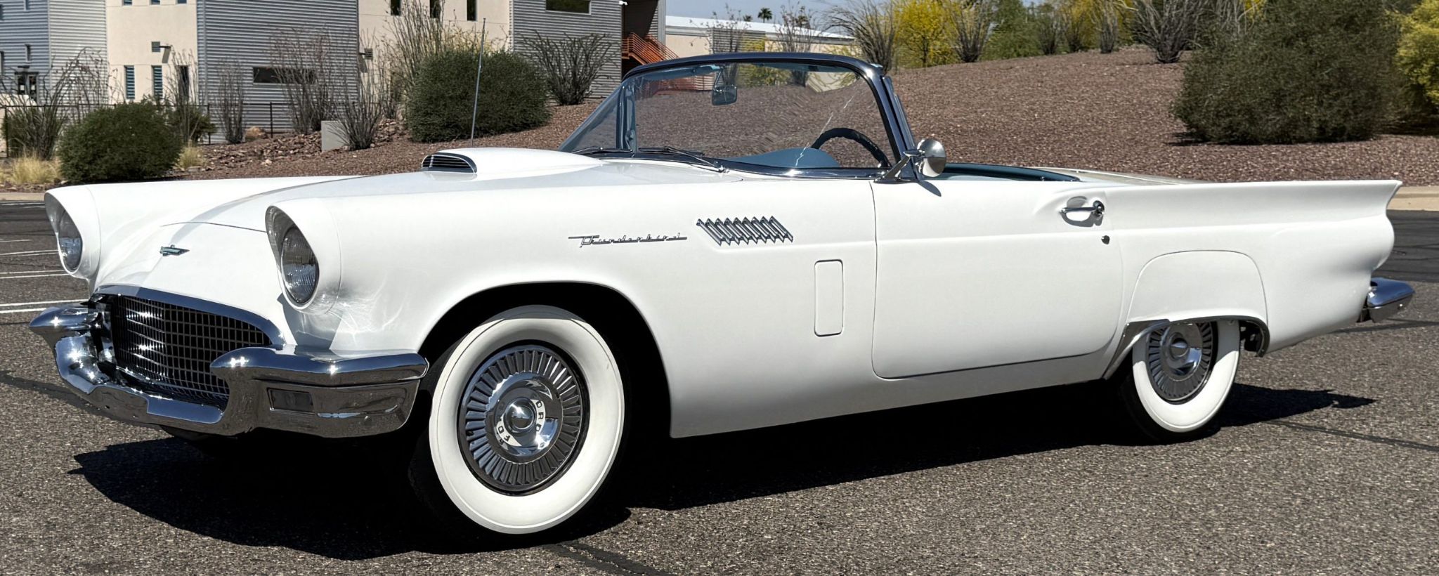 Built in Dearborn, Michigan, the 1957 Ford Thunderbird marked the end of the pure two-seat era before the model evolved into a four-place grand tourer.The Thunderbird waspurchasedin 2006 with84,000 milesand has beenstored in climate control while beingused for weekend enjoyment. Chesters Automative in Phoenixmaintainedthe Thunderbird during thattime period.