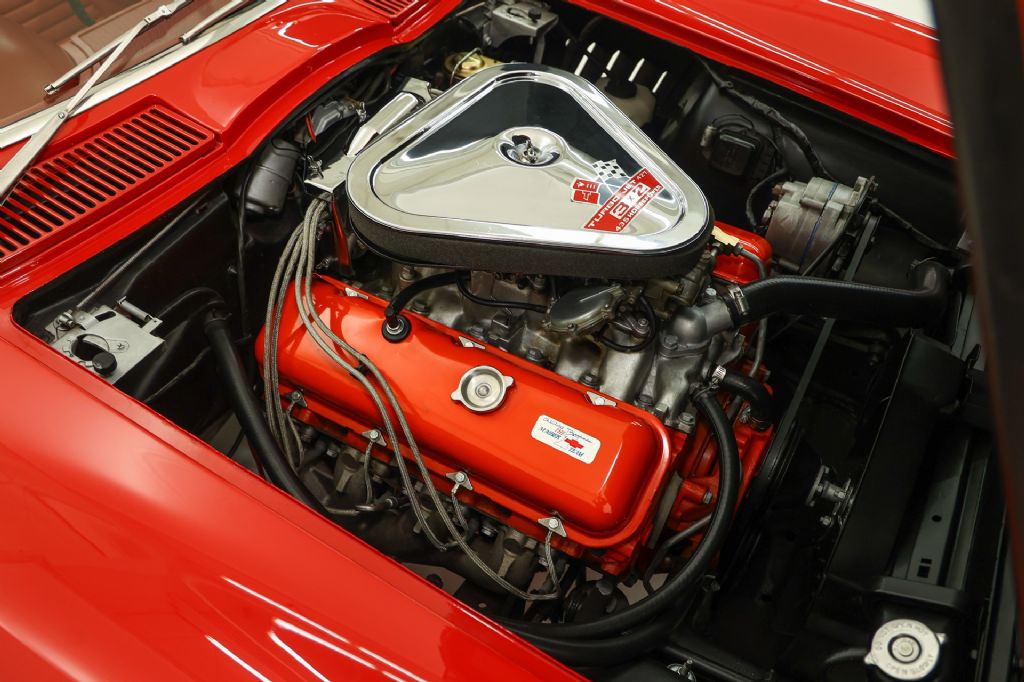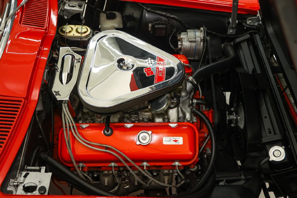An extensive restoration was completed on this Rally Red 1967 Corvette L71 roadster with gorgeous Red leather interior. Rare one year only ominous black stinger hood over that infamous 427/435hp big block power plant topped off with a tri-power, three carburetor setup and nicely optioned with factory side exhaust and rolling on turbine styled bolt on wheels and brand new redline radials that match the car perfectly.