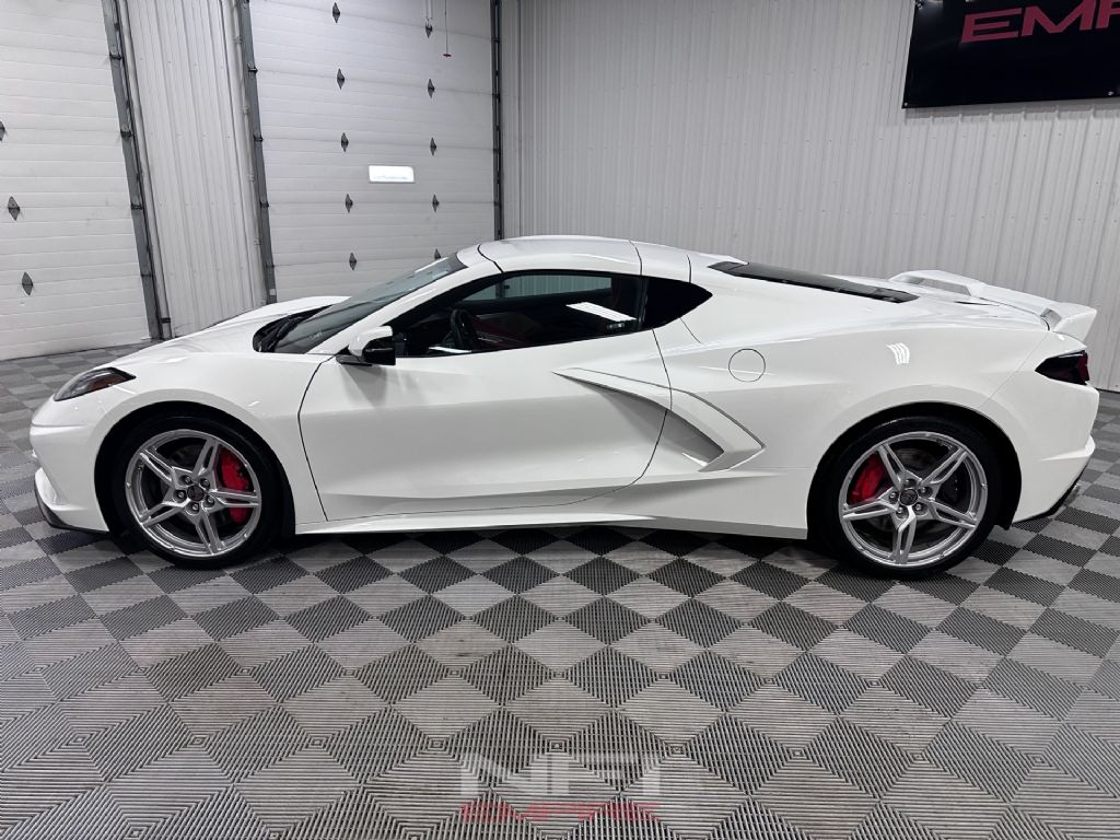 This 2022 Chevrolet Corvette Stingray 2LT Coupe is a one-owner example showing just 2,000 miles and finished in Arctic White over an Adrenaline Red interior. Power comes from the 6.2-liter LT2 V8 paired with Chevrolet's 8-speed dual-clutch automatic transaxle, giving the C8 the quick response and everyday drivability that made this generation such a strong performer right out of the box. This car also carries the 2LT trim, which adds a strong mix of comfort, tech, and driver-focused equipment including heated and ventilated GT bucket seats, a heated steering wheel, memory settings, head-up display, rear camera mirror, Bose 14-speaker audio, Chevrolet Infotainment 3 Premium with navigation, wireless Apple CarPlay, wireless Android Auto, wireless device charging, keyless open and start, remote start, dual-zone climate control, and Performance Data and Video Recorder.