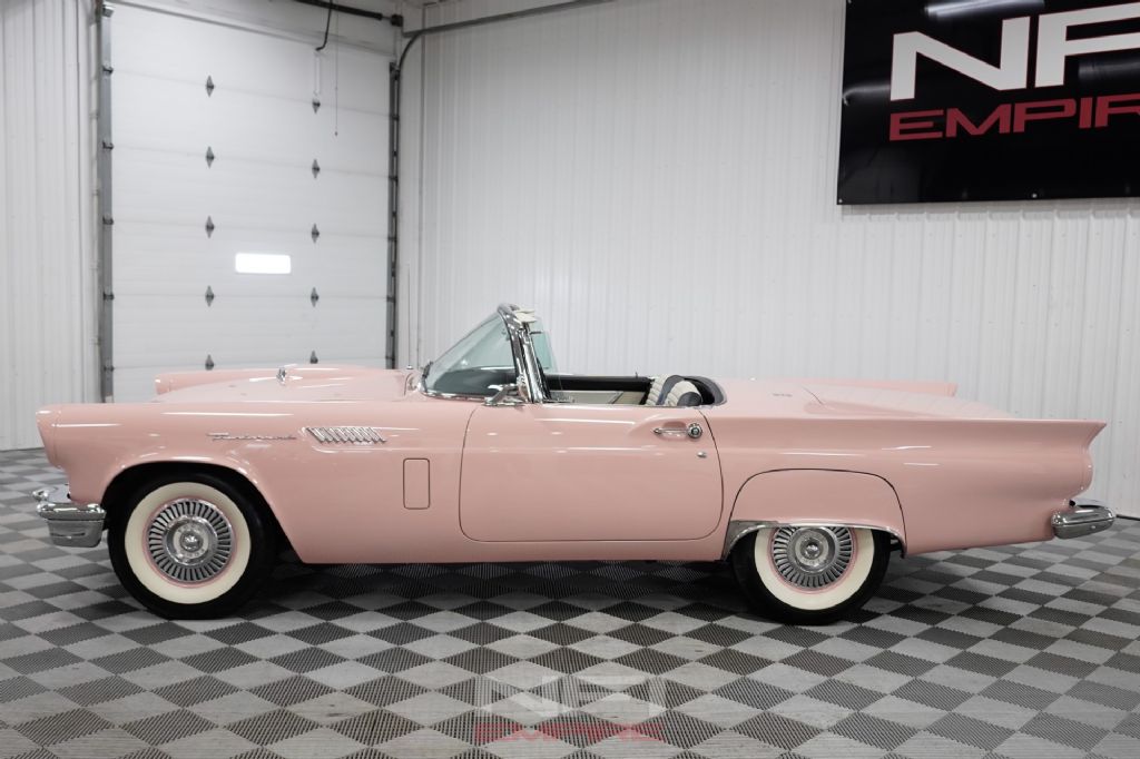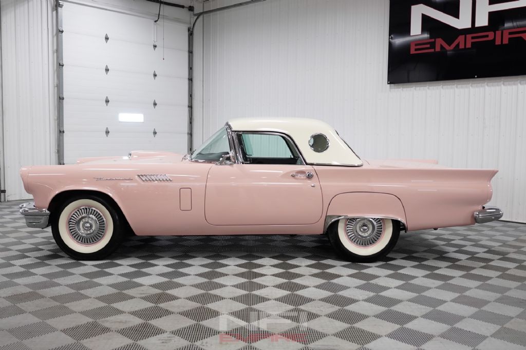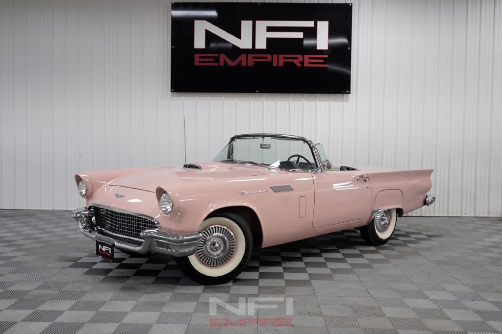 This 1957 Ford Thunderbird stands out as a true E-code car, powered by the factory 312ci Y-block V8 with dual 4-barrel carburetors. That dual-quad setup makes this one of the most desirable performance variants of the final-year two-seat Thunderbird, and it is a big part of why E-code cars remain so collectible today. Backing the V8 is an automatic transmission, and this Thunderbird is also equipped with 3.10 rear gearing and four-wheel drum brakes.
