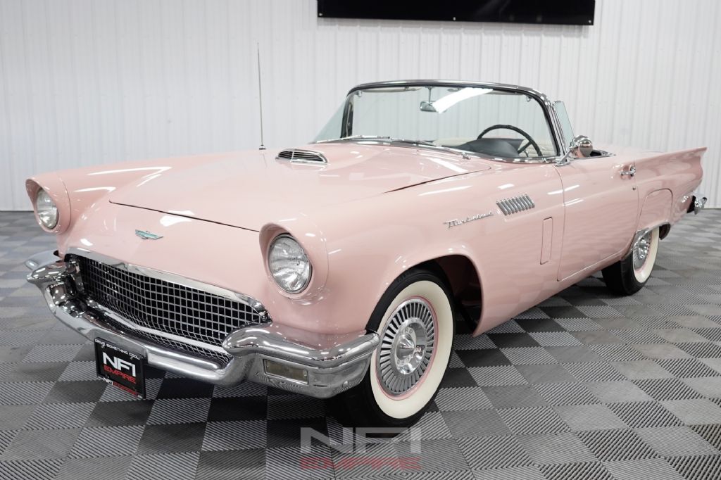 Finished in Dusk Rose with a Colonial White hardtop, this Thunderbird has one of the more memorable factory color combinations offered in 1957. The interior shows the correct black and white presentation, and the car is titled actual mileage with just 26,464 original miles. The Thunderbird was repainted in July 2017, and the overall condition reflects the mileage exceptionally well. Inside and out, this is described as an impeccably kept example.
