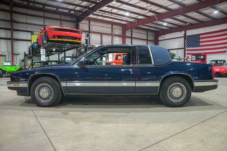 GR Auto Gallery is excited to present this 1989 Cadillac Eldorado Biarritz finished in Blue over a matching Blue leather interior. This personal luxury coupe captures the essence of late 1980s Cadillac design with its smooth lines, elegant proportions, and signature touches like the gold grille and gold hood emblem. The deep blue exterior pairs perfectly with the plush interior, giving the car a refined and upscale presence that stands out in true Cadillac fashion.