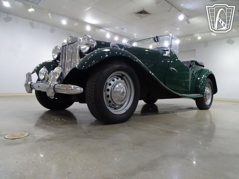 Slide into the driver's seat of this classic 1952 MG TD, and you'll instantly feel transported to a time when driving was pure and unfiltered. The Woodland Green exterior gleams with timeless charm, beautifully complemented by the black vinyl interior that surrounds you in understated sophistication. As your hands rest comfortably on the telescopic steering wheel, you'll notice the thoughtful simplicity of this British roadster, every element designed with the joy of driving in mind.
