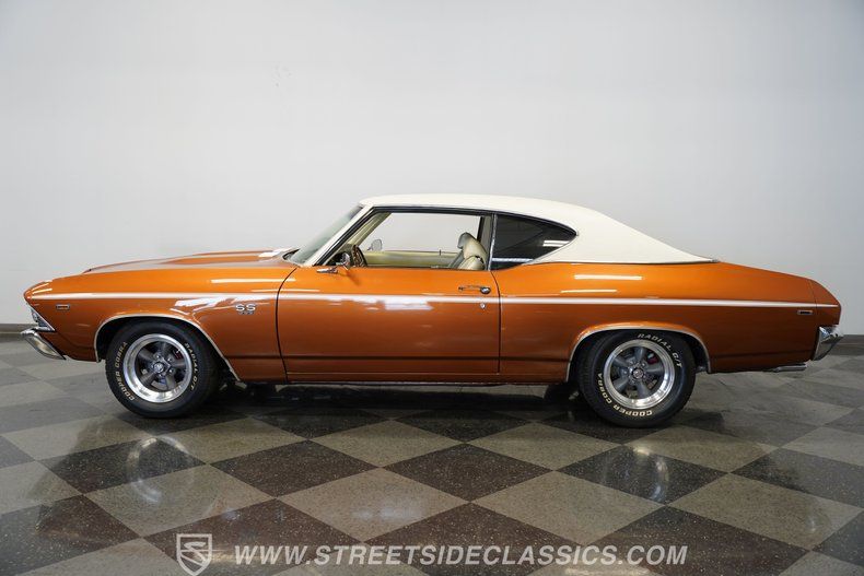 There's a magnetic allure that only a true classic muscle car can conjure, and the 1969 Chevrolet Chevelle SS Tribute LS3 Restomod is a shining example. This beast blends the timeless, aggressive silhouette of the late '60s with the heart of modern performance, breathing fresh life into one of America's most iconic muscle cars. It's not just a car; it's a rolling statement of passion and power on the open road. Wrapped in a captivating Burnt Orange metallic with a crisp white vinyl top, this Chevelle demands attention wherever it roams. Experience the thrill behind the wheel of this 1969 Chevrolet Chevelle SS Tribute LS3 Restomod that expertly merges classic style with contemporary muscle.