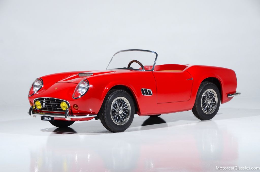 Harrington Junior 250 California Spider replica for sale! This vehicle is crafted by Harrington Junior Cars out of the UK. Presented in Rosso Corsa with tan leather interior this mini car looks and sounds just like the real thing. A medium to large sized adult fits comfortably in this car with adjustable foot pedals and spacious leg room. This mini car is powered by a Lifan quad bike 125cc 3 speed 1 reverse single cylinder 4-stroke gas motor. Top speed is around 31mph! The brakes are hydraulic split system with vented discs. Options include leather interior, wire hubcaps, working dials, floor carpets, handbrake, functional dual exhaust, wood GTO steering wheel, functional headlights and tail lights, horn and more! The transmission is a shiftable 3 speed and feels great! This vehicle is not street legal. Contact us today to place your custom Harrington Mini Car order on all models!