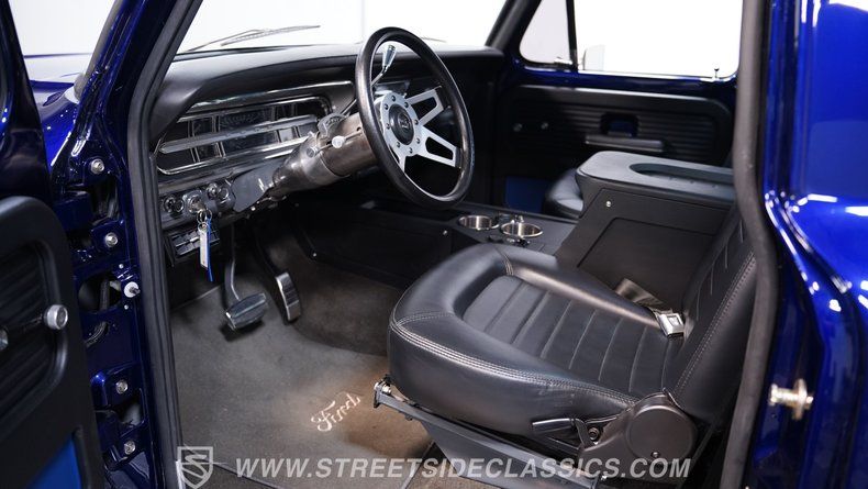 This 1972 Ford F-100 Supercharged Coyote Restomod rides on a custom Porterbuilt 1000-horsepower chassis featuring adjustable coilovers at all four corners, while big six-piston front and four-piston rear Wilwood brakes clamp down on cross-drilled and slotted rotors. If you are like us and can't help but react when a well-done throwback truck rumbles by, then don't wait another second, because this is your chance to be quite literally in the driver's seat. Call today!