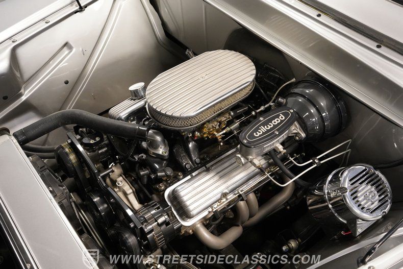 Slide inside and feel the perfect blend of comfort and style. The camel leather bench seat, thoughtfully reupholstered by Carl Zelner, invites you to settle in while the color-matched dash and Classic Instruments gauges provide a clean, purposeful cockpit. Plush square-weave carpet mats protect the floor, and the Brothers steering wheel paired with a Flaming River column offers a tactile connection to the road. Vintage Air conditioning and a Pioneer stereo complete the classic yet refined cabin experience.