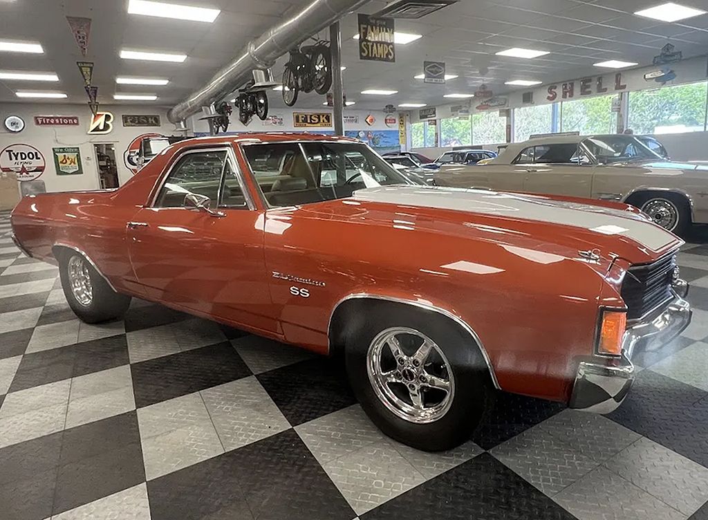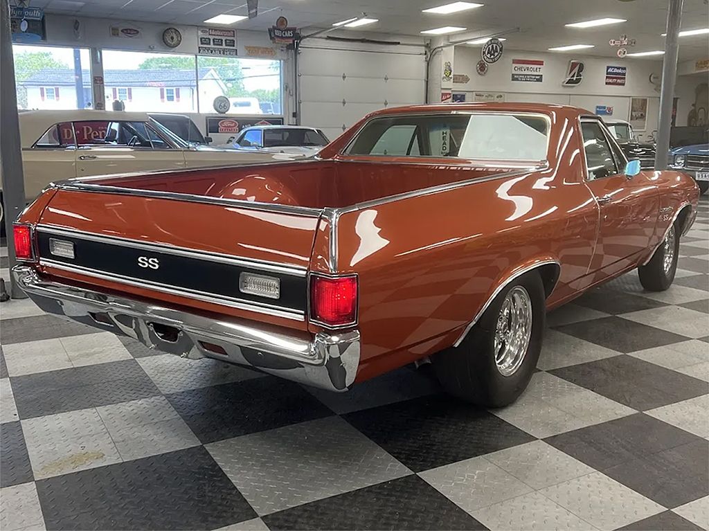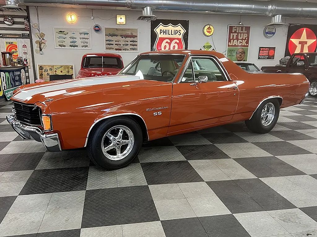 Recent Ground-Up Restoration, factory U code big block, stunning factory (65) Flame orange metallic car, factory Parchment vinyl interior, 489 ci stroker engine, Holley Sniper EFI, Edelbrock Performer RPM aluminum intake, Edelbrock Mutha” Thumpr camshaft, Edelbrock Performer RPM aluminum heads, ceramic headers, chrome air cleaner, Chevrolet valve covers, MSD 6AL ignition with Pro Billet distributor, power steering, power front disc brakes, factory air conditioning, big block radiator with shroud, automatic transmission, factory tach & gauges, tilt column with Sport comfort grip wheel, factory bench seat interior, functional Delco am-fm radio, Flowmaster dual exhaust, Perfect Launch 12 bolt rear axle with Eaton 3.73 Tru-Trac, 275/60R15 Michey Thompson Sportsman rear tires, 28X7.5-15LT fronts, 15” Race Star wheels, cowl hood with pins, dual chrome mirrors, Show or Go!