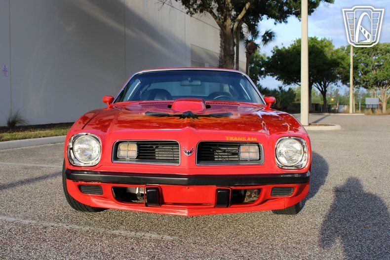 Gateway Classic Cars Tampa Showroom is FIRED UP to digitally present this screaming 1975 Pontiac Firebird Trans Am. In the mid 70's the Z28 was dead. The Corvette was a pathetic 165hp slug, and the Mustang...well never mind. However, the Trans Am was the defiant General Motors step child refusing to sit down and be quiet. The consigner of this gorgeous bird is in his 80s now but purchased the car in 1976 and never let it go. When we asked how his wife reacted when he pulled in the driveway after purchasing the then like new car he stated, "She was not happy." Quite the car guy, the owner recently decided to make the Trans Am better, much better. In 2017 the car was beautifully resprayed in its original Buccaneer Red. (75L75U). Don't be fooled, she looks stock and if you're thinking this is simply a meager 200hp poncho from the 70s, you'd be sadly mistaken. Under the hood rests a Butler big block cranking out an estimated 500hp. Real Pontiac people know Butler. Enough said. Keeping the torque monster civil on the streets is a Tremec 5-speed transmission and you won't find the paltry ten bolt GM rear diff underneath but a 9" Ford assembly with 3.90 gears. But wait there's more. Doug's ceramic headers, QA1 coil overs, Wilwood brakes, tubular upper and lower control arms, aluminum radiator, electric fans, serpentine pulley system and a killer sound system....we are running out of space here. Gear heads know that 2nd Gen Firebirds are on everyone's list and we dare you to find another that is basically a one owner, garage kept car. You can see this one on the showroom floor of our Tampa location.