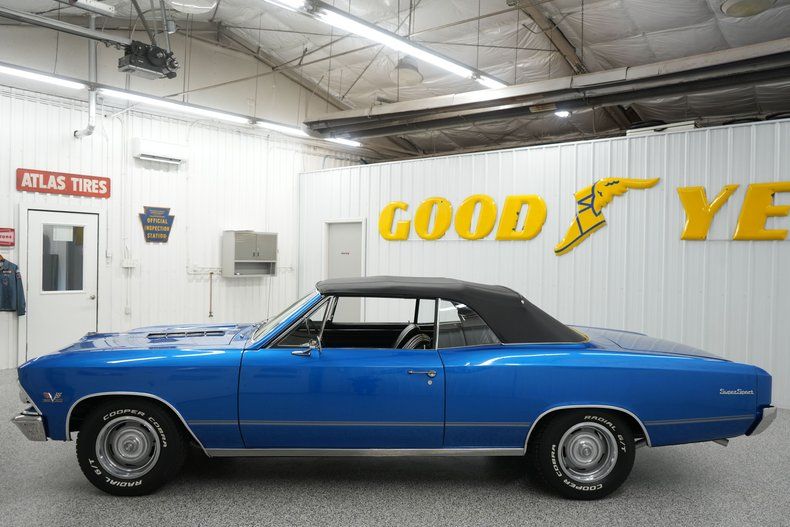 THIS VEHICLE IS LOCATED IN OUR PA. SHOWROOM, FREE SHIPPING AND WARRANTY !!!!! 350cid Small Block Chevrolet Engine. Turbo 400 Automatic Transmission. Power Steering. Power Brakes. Front Disc Brakes. Rear Drum Brakes. 14 Inch Wheels. Front Tires: 225/70/14. Rear Tires: 225/70/14. GM 12 Bolt Rear End. POSI Rear End. 3.43 Gear Ratio. Stock Cast Intake. Holley 600cfm Carburetor. Stock Distributor. Stock Coil. Mechanical Fuel Pump. Stock Ignition. Stock Radiator. 5 Blade Cooling Fan. Blue Exterior. Chrome Front & Rear Bumpers. Bright Rocker Moldings. Bright Wheel Lip Moldings. Black Convertible Top. Bright Window Trim. Drivers Side Mirror. Black Vinyl Interior. Front Bucket Seats. Rear Bench Seat. Center Console. 120MPH Speedometer. Power Convertible Top. Dual Exhaust. Chrome Valve Covers. Cooper Cobra Radial GT Tires. Stock Cast Exhaust Manifolds. Black Carpeting. Black Door Panels. Factory Gauges. Silver Side Stripes. Clock In Center Console. Rally Wheels w/ Beauty Rings & Center Caps.