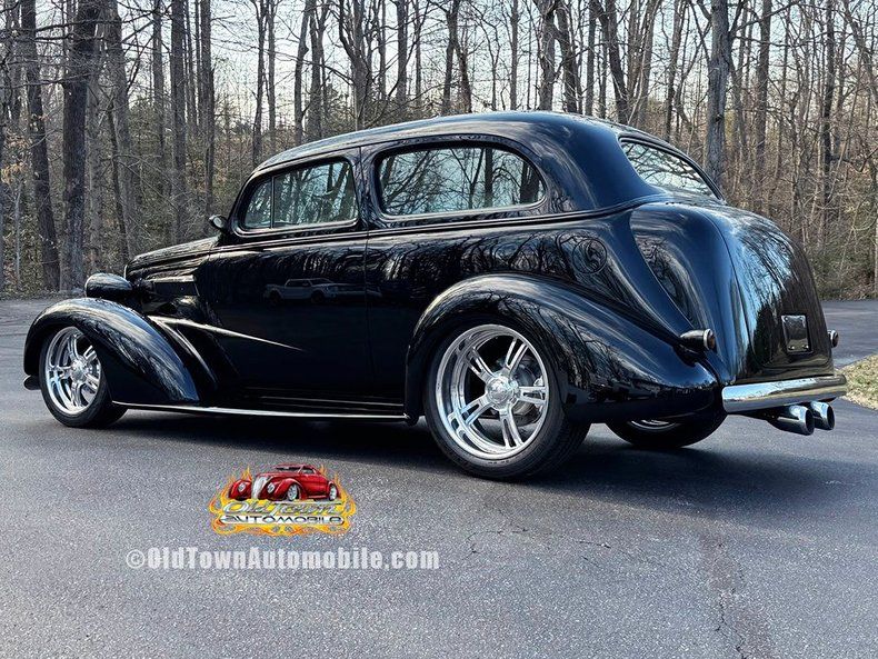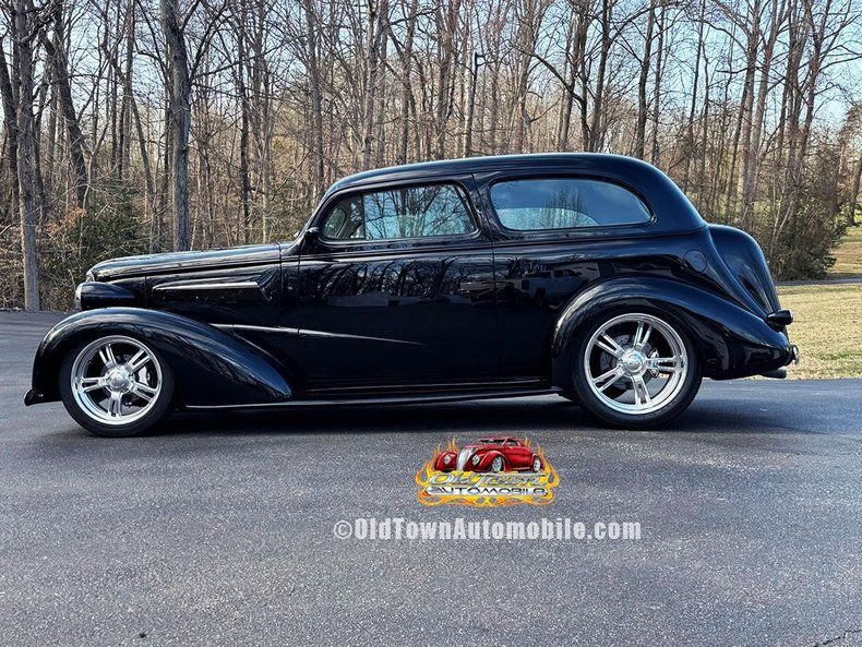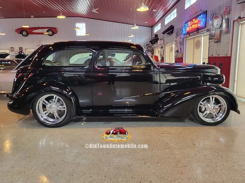 One-off custom steel body with numerous body mods, 1.5 inch chop, vertical B pillars laid forward, modified grill, front split bumpers, narrowed rear bumpers, slick Black paint, body mods too many to list, ZZ/430hp small block, polished aluminum heads, Edelbrock performance RPM Dual Quad intake with 500 cfm carbs, performance-built 700R4 4-speed automatic transmission with 2500 stall, 9-inch Ford rear with 3.50 gears and positraction, Heidts Super Ride front suspension with power rack-n-pinion steering, triangulated 4-bar rear suspension with coilovers, 4-wheel Wilwood power disc brakes, Schott Mods billet wheels 18 and 20 inch, Kings Auto upholstery custom leather interior, 6 power windows, power seats, Alpine and JL audio speakers, Flaming River tilt column, Classic Instruments gauges, air and heat, over 3k hours in building this car, truly a work of art. Runs out great. See lots of photos and video of this car on our website.