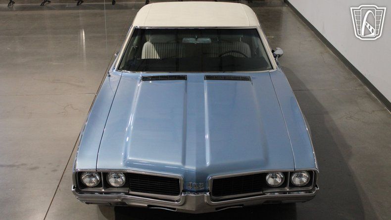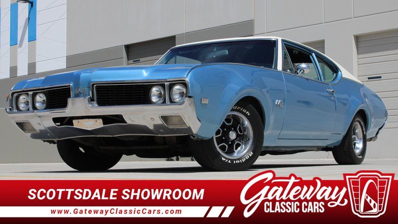Gateway Classic Cars of Scottsdale is proud to digitally present this stunning 1969 Oldsmobile 442, and you'll immediately feel the allure of classic American muscle. Dressed in a striking Blue and White exterior with a crisp White vinyl interior, this car is a head-turner from every angle. The bold lines of the 442 are complemented by its unmistakable stance, a testament to Oldsmobile's commitment to blending performance and style. As you settle into the comfortable vinyl seats, you'll notice the thoughtful details that make this car a true icon of its era.