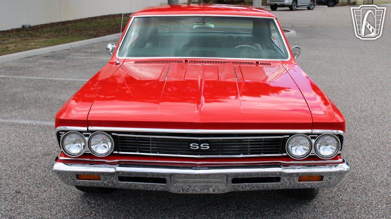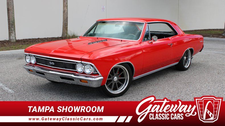 Gateway Classic Cars Tampa Showroom is pumped to digitally present this nasty 1966 Chevrolet Chevelle "SS" Tribute. Car guys and girls love to name their rides and this one might be appropriately named, "El Diablo." Everything about this '66 is HOT! The red paint is so hot you'll have to squint. Maybe, "Hot Sauce" is a better name. Anyway, if you want the classic mid '60s Chevelle look but with substantially better performance then look no further. This "Tribute" was a full blown restoration performed by the owner who just happens to be a retired military veteran with a serious attention to detail obsession. Under the hood, is a very healthy de-stroked 454 (140154445) crammed with a mean sounding cam and topped off with Edelbrock heads, Weiand Stealth intake, and a Brawler carb. A Muncie 4-speed sends the power back to a 12 bolt rear differential with 3.73 gears. Wilwood brakes and QA1s keep everything stopping and handling better than new. If you want to mess with your neighbors, flip a switch and the exhaust opens...he he. They'll love it. So here's the bottom line. This '66 has the look, the stance, the power, and the cool factor without question. It would virtually be impossible to find a worthy Chevelle, take it to a quality shop, and have it built to this level for what you can buy this tough guy for. Consignor/Builder has a folder of receipts. You'll see this one sitting on the showroom floor at the Tampa location, but you better hurry!