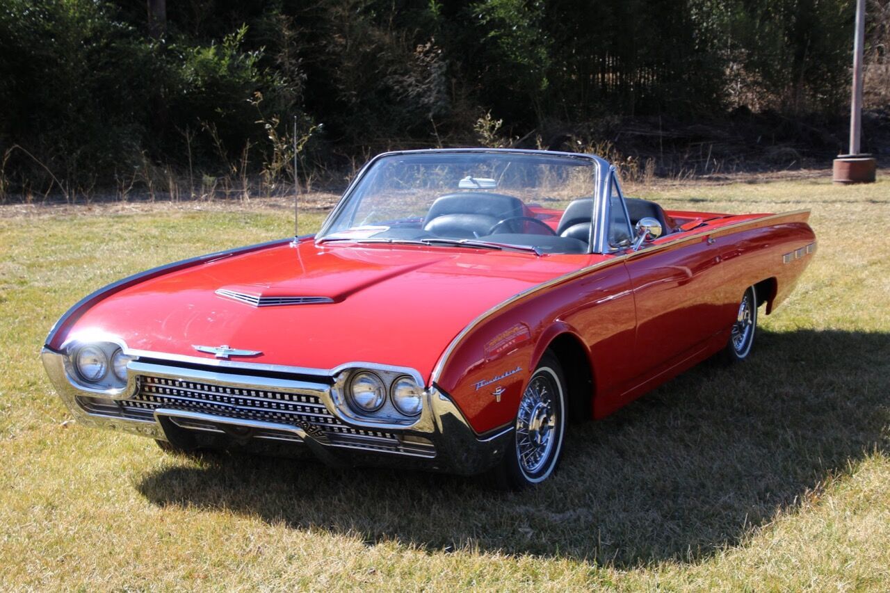 *LOCATED IN SOUTH CAROLINA* Erics Muscle Cars is proud to offer this Beautifully Restored Sports Roadster and is listed in the Thunderbird registry ! This limited edition T Bird was treated an engine and transmission rebuild , new convertible top , new bumpers ,new gas tank and fuel lines at 62,173 miles , recently completed , rebuilt steering box , wheel cylinders , brake lines , brake shoes , exhaust system , shocks , convertible top pump/motor , new interior , carpet , dash , aluminum trim , tires and tubes , paint (base coat , clear coat) PPG Global system . The Sports Roadster was a limited production version of the convertible which added 48 spoke Kelsey-Hayes designed wire wheels, special badges to the front fenders and a passenger side grab bar to the front dashboard. The most striking addition to the Sports Roadster was a fiberglass tonneau cover which covered the back seat of the car and created a two seater appearance. 1,427 Sports Roadsters were produced in 1962, including 120 models with the special M Code option.