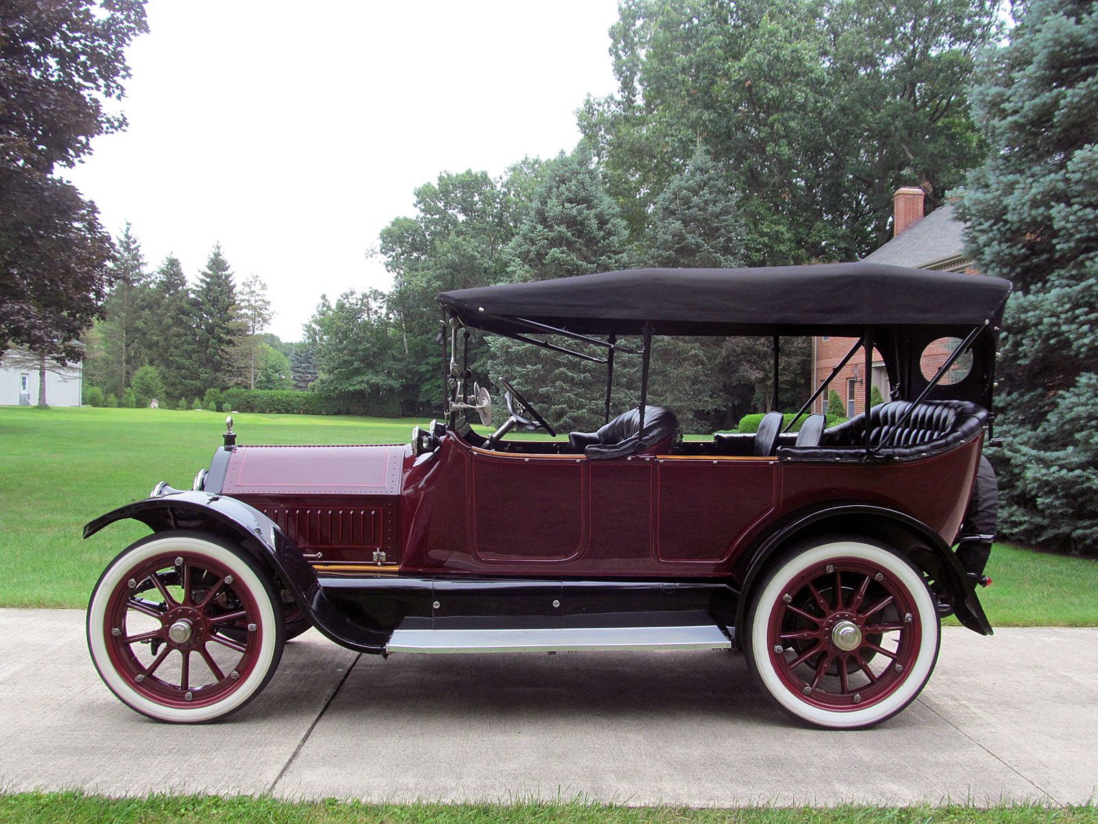 1914 Cadillac Model 30 Seven-Passenger Touring Convertible. Call Pete or Andy 419-668-1884. Outstanding Cadillac. The largest and most refined of the Model 30 series. Sold new by Don Lee Cadillac in Los Angeles California. Cadillac LaSalle Club (CLC) Senior Award Winner. Featured in the CLC “Self Starter” magazine. It is said this wonderful Cadillac once changed hands during a poker game in Reno. Restored. Recent engine overhaul with receipt. Finished in Maroon with Red Coach Stripe. Beautiful Nickel Bright work. Black Button-Tufted Leather interior. Two Jump Seats are located in the rear passenger compartment. Black cloth top with Boot, Full Tonneau Cover Set for top down touring and Side Curtains for brisk fall days. Powered by Cadillac’s proven and powerful 365 Cubic Inch 4-cylinder engine which was rated at 48 horsepower. Electric Start. Three Speed Transmission. Two Speed Rear Axle for high speed touring. Exhaust Cut-Out. Gray & Davis Electric Lamps. Turn Signals have been added for modern touring. Engine mounted air compressor for roadside tire service. Tool Kit. Demountable rims. Rear mounted spare tire with cover. Dual outside mirrors. Great Automobile for CLC, Horseless Carriage Club of America (HCCA) and Antique Automobile Club of America (AACA) Club event and tours. Excellent Road Manners. Ready to Drive, Show and Enjoy. Call Pete or Andy 419-668-1884 BE SURE TO WATCH THE VIDEO!