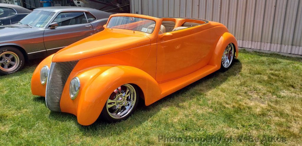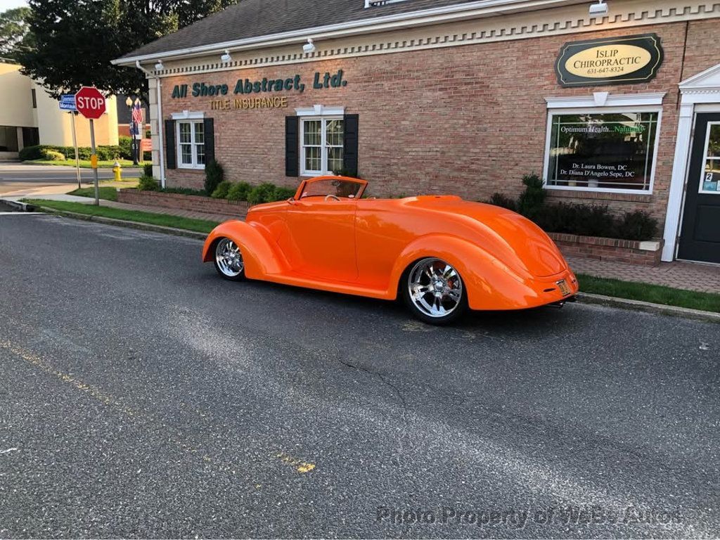 1937 Ford Roadster Convertible For Sale Built in 2005 and Only Driven 18k Miles 350 LT1 Police Interceptor Motor With Flat Top Pistons and Over 335hpCrate Motor With Cast Iron Heads Vintage Air Conditioning Headers Leading To Dual Exhaust With Polished 40 Series Flowmasters Ceramic Coated Exhaust System With Megs Chrome Tips 650 Edelbrock Carburetor On Chromed Intake Manifold Mild Aftermarket Cam All Engine Accessories Chromed Or Polished One-Off Engine Cover/Air Intake MSD Electronic Ignition System PRC Aluminum Radiator With Electric Fan (Never Runs Hot Even When Idling With Ac On) 700R4 Automatic Transmission With Overdrive Rock Valley Polished Stainless Steel Fuel Tank With External Electric Fuel Pump 4 Wheel Wilwood Power Disc Brakes With Polished Calipers With Integrated Rear E-Brakes Power Rack-N-Pinion Steering Billet Specialities 17 And 20 Wheels With Yokohama Tires Ford 9 Rear End With Double Adjustable Chrome Coil Overs Polished Stainless Steel 4 Bar Rear Suspension Heidts SuperRide IFS With Polished Stainless Steel A- Arms Chassis Custom Made By Downs. Boxed, Smoothed With Tubular Crossmembers Stainless Steel Fasteners Throughout Stainless Steel Gas Tank Forward Tilt Hood Hinges Power Four Wheel Disc Brakes Billet Specialties Rims 20 Back Tires And 17 Up Front Fiberglass Downs Body Painted Tangello Pearl By House Of Kolor Underside Of Body, Including Inside Fenders, Painted To Match Body Color 1937 Phaeton Fenders, Running Boards And Rocker Panels Cut And Rounded Door Corners Give It A Clean Look Flush Mounted Led Taillights And Third Brake Light Flush Mount Gas Cap Beautiful Chrome Accent Strips On Top Of Windshield And Along The Back Boot Power Windows Remote Entry Comfortable, Custom Full Leather Interior By Tri City Upholstery Is Near Perfect (Not Ultra Leather) Custom Hand Made Console And Wrap Around Dash Chromed Ididit Column With Half Wrapped Billet Steering Wheel VDO Gauges 8 Spoke Leather Wrapped Chrome Steering Wheel Chrome Tilt Steering Column Custom Stereo Power Trunk Sounds Fantastic Very Reliable This Is One Of A Kind, Highly Modified And Altered Downs Body. Mods Include Narrowing The Doors And Fabricating A Rocker Panel Joining The Quarter Panels And Cowl (Not Found On Other Bodies). Radiused And Smoothed Door Openings. Body Upper Panels Were Raised Creating A Straight Belt Line/top Seam. Stainless Trim On The Body Tops To Prevent Chaffing Of Roof On Painted Surfaces. A Downs Phantom Coupe Front End Was Used (Pinched Down About 2) That Gives The Car A Natural Raked Look Without Jacking Up The Rear End Of The Car. Forward Tilting Hood, Sculptured And Curved Windshield Frame. The Modified Hardtop That Was Shortened For No Overhang Over Windshield And Leaned Forward At Backglass For A Smoother Flow Of The Body Line. German Hartz Top Fabric Covers The Hardtop And Is Nicely Trimmed With Hidden Hardware To Secure Top To Body. This Car Was Built As A Very Drivable Show Car. It Has 1,200+ Miles On It And Runs And Rides Great. There's Lots Of Head And Leg Room And No Rock Chips Or Scratches. This Car Gets A Lot Of Attention And Is A Consistent Award Winner. Has Never Been Seen In Any Indoor Car Shows On The West Coast But Has Been Invited To Blackies And The Grand National Roadster Show. Take a Look at the HD Video: https://youtu.be/t9c4Xn-DuwI For Sale By Owner Located In East Islip, NY WeBe Autos Specializes in Marketing and Advertising Muscle, Classic, Vintage and Specialty Cars. We offer Professional Photography, HD Movies, and Staging that Sells Cars. Let us showcase and sell your specialty car. Please visit our website for more details. Keep in Touch, Michael Runnalls Specialty Car Marketing & Media WeBe Autos Ltd. Long Island, NY 11780 Michael@WeBeAutos.com www.WeBeAutos.com (O)631-339-0399 (C)516-729-2003 Skype: webeautos (F)631-389-2605 - - - Contact Michael Runnalls at 631-339-0399 or Michael@WeBeAutos.com for more information. -