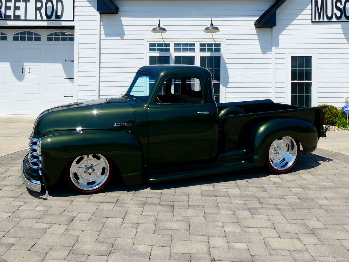 Check out this amazing new custom built 3100 Chevrolet Pickup! Nut and bolt frame off build with only test miles. Finished in Rainforest green with one piece front windshield and new door glass. LS Fab Chevrolet Billet grille. Altman door latches and new door regulators. You'll never own a truck that doors shut and line up so nice! The bed is finished in a Beachwood stain and satin clear coat finish. All new chrome and stainless around.