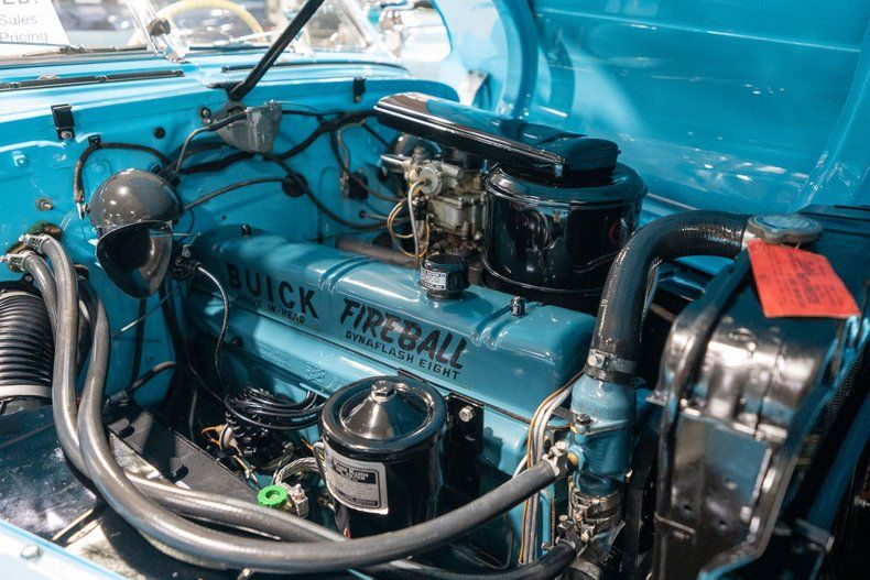 This 1947 Buick Super Convertible is a beautifully restored convertible that is equipped with numerous desirable options! Coming out of World War II, the American automakers were coming out of a time period where auto manufacturing was stopped due to the War effort. As such, the first few years of post-war production the styling resembled the pre-war style since the American manufacturers had yet to redo their tooling and manufacturing process to accommodate new post-war styles. In other words, the immediate post-war models were essentially jazzed up versions of 1942 models. In 1947, the Buick division of General Motors offered three distinct model lines, the entry-level Series 40 Special, the top-of-the-line Roadmaster, and, what was touted as somewhat of the best of both worlds, the intermediate Series 50 Super. Sitting on a longer wheelbase than the less-expensive Specials while sporting a more economical engine of the Roadmaster, the '47 Buick Super was a smashing sales success for the GM marque. In fact, Buick had a great year in 1947 sitting in fourth place among American car manufacturers and making up 7.5% of automotive production. Despite being the second most expensive body style in its respective Series, Buick actually produced the most convertible models of any American automaker in 1947. For the reasons mentioned previously, 1947 Buick style remained similar to the 1942 and thus 1946 models. The most noticeable difference between the 1946 Buicks from the 1947 Buick models was a style change in the grille, with the '47 grille was now stamped and featured a separate upper chrome bar and new emblem. Although Buick sat below Cadillac in GM's hierarchy, the Supers came equipped with a number of high-end luxury options such as hydraulically-powered seats, windows, and convertible tops. In total, Buick produced a total of 28,297 Super Convertibles which makes this particular '47 Super Convertible a model seldom seen today. Under the side-opening hood on this '47 Buick is a 248 Cubic Inch "Fireball" Straight 8 cylinder engine fed by a single 2 barrel carburetor that together were said to have produced 110 horsepower when new. The 248 Fireball Dynaflash Inline 8 is backed by a 3 speed manual transmission that is shifted via a column-mounted "three-on-the-tree" shifter. Exhaust exits via a single tailpipe capped with a chrome exhaust deflector. This Super Convertible is loaded with options! Dual outside chrome mirrors are always a welcome addition to a collector car of this vintage since they make maneuvering in and out of a tight garage stall or into a tight spot at the local car show much easier. This 1947 Super also comes with dual outside spotlights which are another novel option on a classic Buick. A pair of auxiliary driving lights further improve visibility during nighttime driving. Riding on a set of wide whitewall bias-ply tires on color-matched steel wheels capped off with chrome Buick hubcaps and beauty rings this '47 Buick Super has a fantastic look cruising down the road. The rear tires are tucked behind a set of color-matched fender skirts further adding to the iconic post-war look of this Buick. The blue cloth power convertible top is in fantastic condition and it goes up and down with the simple push or pull of a knob located under the dash. When down, the convertible top tucks neatly under a matching dark blue cloth boot. The exterior chrome and brightwork, including the optional front and rear bumper guards, are in fantastic condition and add to the upscale look of this 40s luxury automobile. The exterior has been refinished in a beautiful Cambridge Blue paint that completes the exterior look of the car. The interior of this '47 Buick Super Convertible is gorgeous! The front and rear bench seats have been reupholstered in a beautiful Blue and Ivory vinyl and the front bench is easily adjusted via a power switch. The matching door panels, blue carpeting, color-matched painted dash, and steering wheel are all in fantastic condition and appear to retain a nice stock look. The driver's and passenger side windows are both powered, going up and down with the simple flick of a switch. The instrument cluster is outfitted with a 120 MPH speedometer, battery gauge, temperature gauge, oil pressure gauge, and fuel gauge. The color-matched dash is finished with a Sonomatic AM radio with integrated speaker, clock, and locking glovebox. Whether you're adding to an existing collection on Buicks or you're buying your very first classic car, this 1947 Buick Super Convertible would make an excellent addition. Give Ellingson's a call today at 763-428-7337!