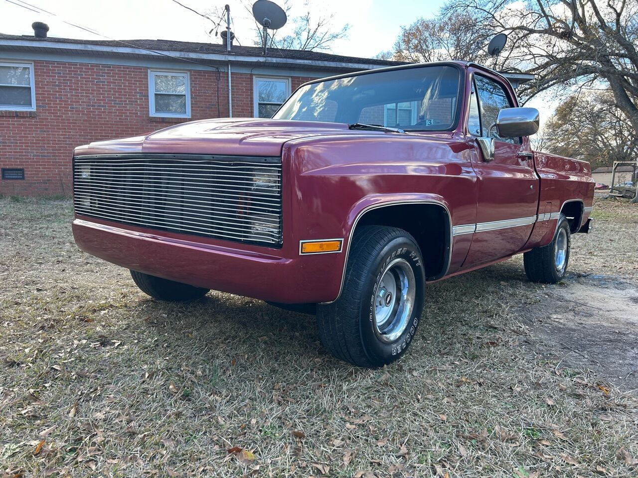 1981 Chevy Short Bed Pickup. Super clean Rust-free South Carolina Truck. Nice burgundy exterior paint, with custom front grille, roll pan, and steel Cowl Hood. Nice interior, with new door panels, dash pad, and freshly recovered seat. 350 chevy engine with dress-up kit mated to an automatic transmission. This truck sounds great through its dual exhaust. Good driving square nose chevy!!! Call Today !! 978-846-2783