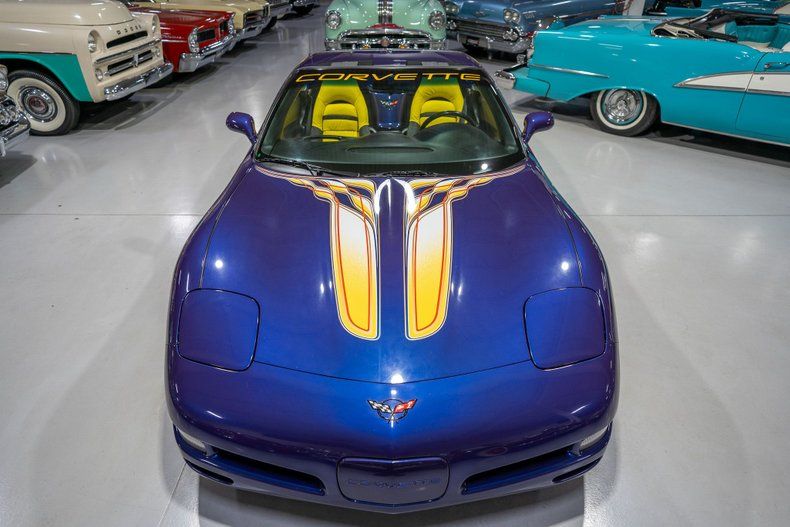 This 1998 Chevrolet Corvette Pace Car Edition is a nicely preserved lower mileage example sporting the iconic 1998 Indianapolis 500 Livery and is ready to be your next summer cruiser! When Chevrolet debuted its Corvette concept car at the New York City Motorama in the early 1950s, few would have expected that not only would the GM marque continue to produce the car for the next 75 years, but also that it would garner a reputation as being America's performance car. See in the early 1950s, Chevys were economical people movers and weren't yet thought of as offering stellar performance on the racetrack. As Corvette production moved into the middle of the 1950s, Chevrolet added a V8 engine along with a manual transmission option and the Corvette would start building its performance-oriented legacy and started to establish itself as a true competitor to the European sports cars that it was originally meant to compete against. Into the 1960s and 70s, Chevrolet had sold thousands of its wildly popular, performance-oriented Corvette but for whatever reason, it never served as the Pace Car at the Brickyard for its famous Memorial Day race. That all changed in 1978 when the Chevrolet Corvette was chosen as the Official Indianapolis 500 Pace Car and to commemorate that accomplishment, the Chevy even sold a limited edition Pace Car Replica sporting the iconic black and silver Indy 500 livery. In 1986, the Corvette was once again selected to pace the racers in Indianapolis and, interestingly, the actual '86 Corvette Pace Car was the first street legal Indy 500 Pace Car since the 1978 Corvette that paced the 62nd 500 Mile International Sweepstakes. The Corvette was chosen as the Indy 500 Pace Car yet again in 1995 and it was driven by famed Indy 500 racer Parnelli Jones. The fourth Corvette model to serve as the Indianapolis 500 was the 1998 model, clad in Pace Car Purple with special Indy 500 decals. To commemorate the special C5 Pace Car, Chevrolet built an additional 1,163 Indy 500 Pace Car Edition cars in 1998 and they were available for purchase at through Chevrolet's dealership network. These Pace Car Edition Corvettes were offered with either a 4 Speed Overdrive Automatic transmission or a 6 speed manual. In total, only 616 were built with 4 Speed OD Automatic transmissions, which makes this particular Corvette a rare car that just about anybody can drive. This 1998 Corvette is believed to have spent the majority of its life down south and comes to us from a southern-based collector who took great care of the car. Powering this '98 Pace Car Corvette is a 5.7 Liter LS1 V8 fed by electronic fuel injection that together were said to have created 345 horsepower when new. The 5.7L LS1 is backed by a 4 speed automatic transmission with overdrive which makes this collectible Corvette an easy car for just about anybody to take for a spin around the block. Exhaust exits the LS1 V8 via a dual exhaust setup that gives this C5 Pace Car its iconic Corvette sound out the rear. Power is sent from the 5.7 Liter V8 to the rear wheels through a limited slip differential so that you can be sure that you'll be able to keep the rubber to pavement. Since this Corvette is a late model collectible, it comes loaded with tons of creature comforts. Squeezing into a tight parking space is a total breeze since this 1998 'Vette comes equipped with power steering. Steering is further assisted with the "Magnasteer" speed sensitive rack and pinion steering rack that makes it easier to take a tight curve at higher speeds. With power disc anti-lock brakes in all four corners, bringing this Corvette to a complete stop is also easy especially with all that horsepower under the hood. You'll be able to stay cool on the hottest summer days and warm on cool fall or spring nights since this '98 Corvette is equipped with dual zone air conditioning and heat. The black cloth convertible top is manually operated, easily by a single person, and it is in wonderful condition. Riding on a set of yellow painted cast aluminum wheels with 245/45ZR17 radial tires up front and 275/40ZR18 radials in the rear this Pace Car replica has an eye-catching look and fantastic ride cruising down the road. The exterior has been finished in Indianapolis 500 Livery consisting of Pace Car Purple basecoat/clearcoat paint and the special Indy 500 decals. The interior of this 1998 Chevrolet Corvette Pace Car Edition is absolutely stunning! The bucket seats have been correctly and recently reupholstered in gorgeous two-tone Black and Yellow leather and both are 6-way power adjustable seats. The black upholstered door panels, center console, carpeting, leather wrapped dash, and leather wrapped steering wheel are all in wonderful condition as well and appear to remain in the stock configuration. The instrument cluster is equipped with a 200 MPH Speedometer, 7,000 RPM tachometer, oil pressure gauge, temperature gauge, volt gauge, and fuel gauge, along with a display for the Driver Information Center (D. I.C.). The interior is also loaded with numerous desirable creature comforts including power windows, memory power seats, adjustable mirrors, and power door locks. With an AM/FM/CD entertainment system, you'll be able to listen to all of your tunes while cruising down the road. Whether you're buying your very first collector car or you're adding to an existing collection of classic Corvettes, this 1998 Chevrolet Corvette Pace Car Edition would make an excellent addition. Give Ellingson's a call today at 763-428-7337!