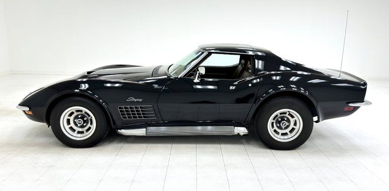 For consignment, a numbers matching 1971 Chevrolet Corvette coupe in a color that was not available in 1971, but one everyone wanted. With side pipes, T-tops and those amazing side gill vents, this '71 does an outstanding job of representing the American sports car. It put the big block to work in a sleek, muscular, take no prisoners design that unknowingly was just years before a malaise period with government regulations and an oil crisis looming that would put a kibosh on some of the Corvette badassery.