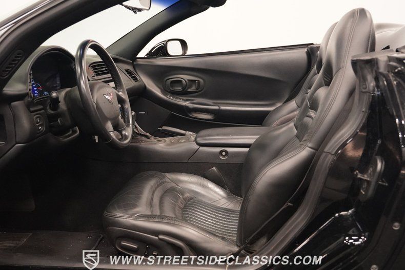 The Black paint of this 2000 Chevrolet Corvette Convertible shimmers with an understated intensity. Its sculpted lines exude timeless elegance and performance, free of any distracting stripes. This meticulously maintained Corvette has been carefully driven a mere 38,628 since it was new. Upgraded polished aluminum 19-inch custom wheels are wrapped in Michelin performance tires staggered 275/30ZR19 front and 305/30ZR19 rear, giving this Corvette a confident stance. The folding convertible top promises open-air thrills. Slide into the black leather bucket seats and discover a luxuriously appointed cabin. The interior exudes an air of refinement, with a Delco Electronics AM/FM CD stereo powered by Bose speakers, power steering, windows and locks, along with ice-cold air conditioning that ensure a comfortable ride, no matter the destination.