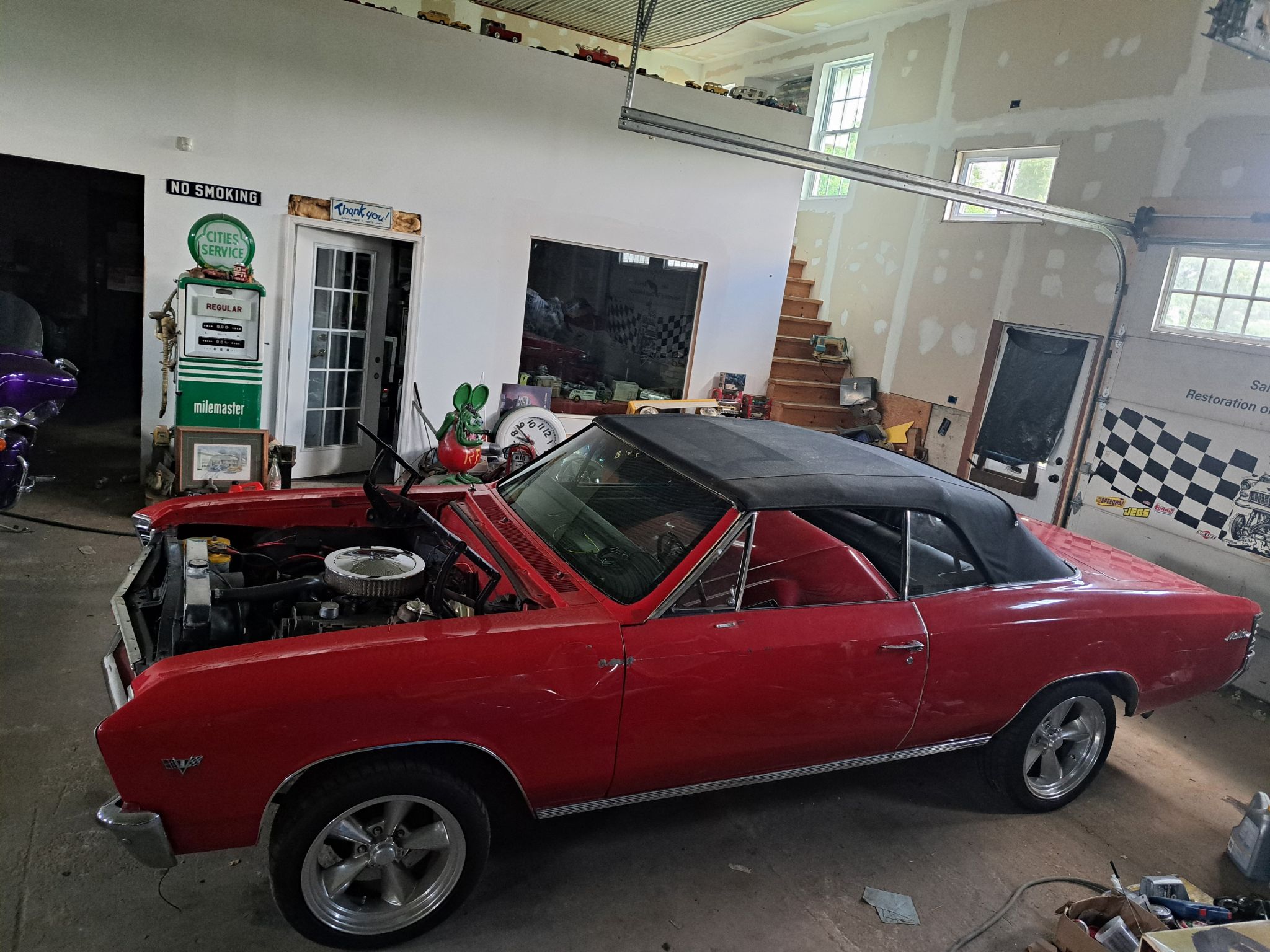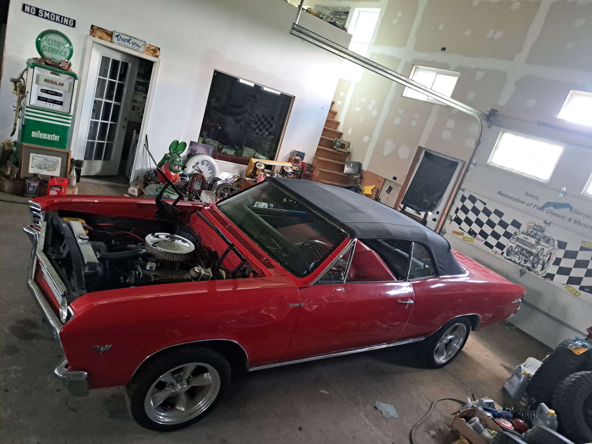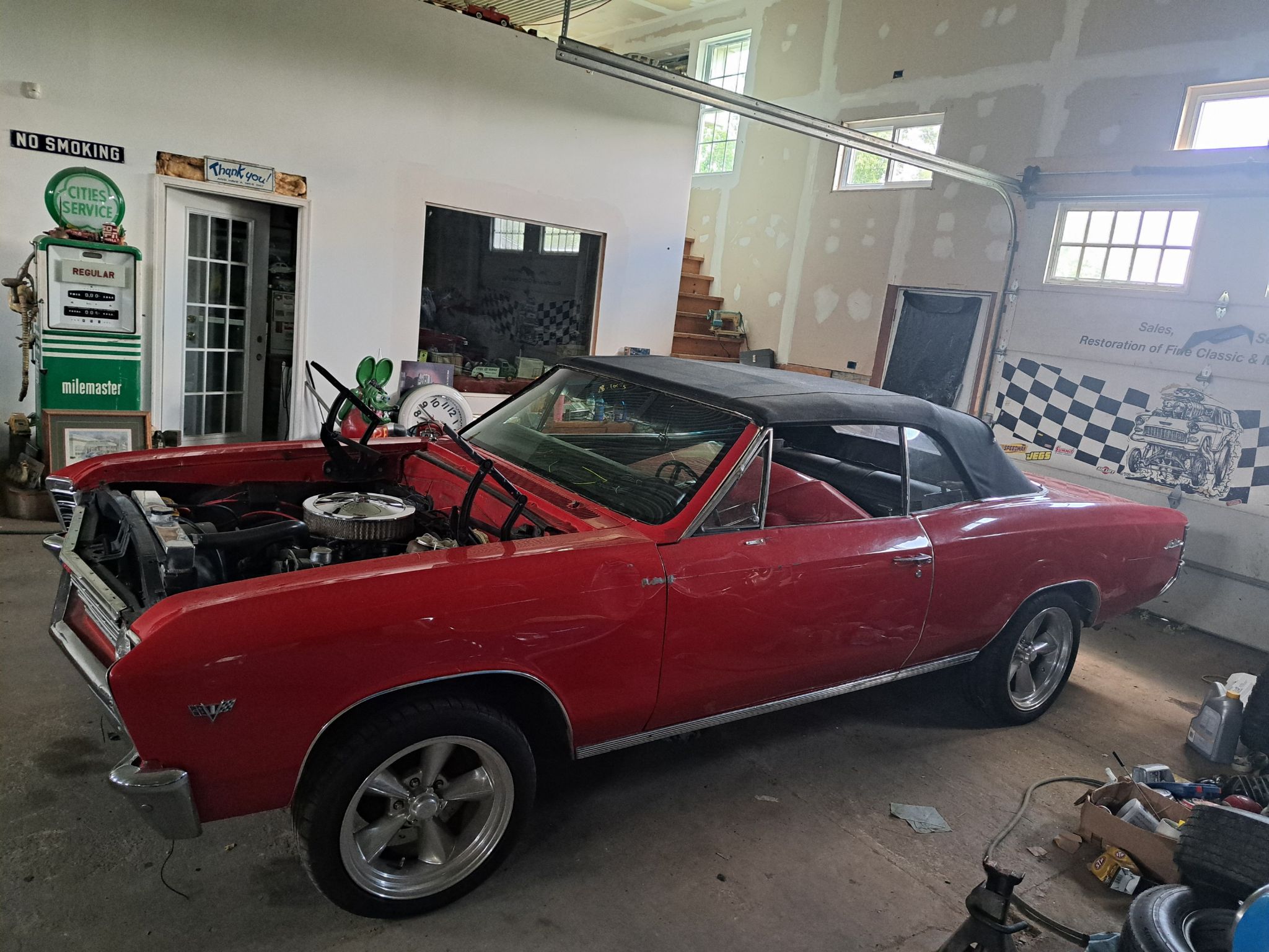Someone is going to get a great deal on the great car. 1967 Chevelle convertible, rust free car was being restored and when almost finished she was taken out for a spin and had a minor accident. It has scratches and a couple of small dents. It has a high-performance Chevy performance small block engine, automatic transmission and a 12 bolt 308 posi. rear end. Front power disc brakes, SS hood