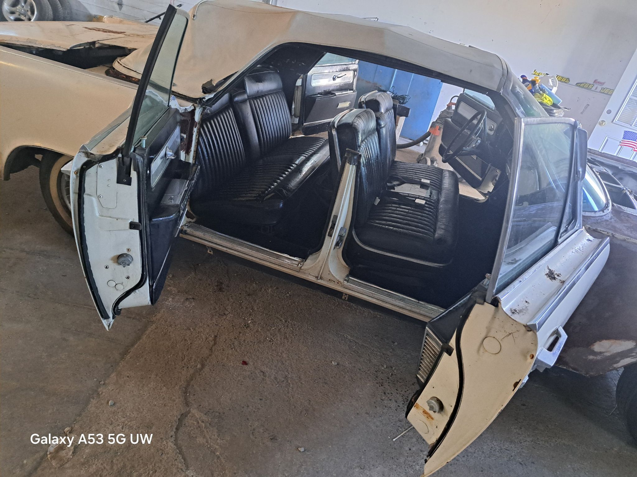 This is a rock solid car that has been in storage for many years. The car is complete and has a clean title. The engine was removed and rebuilt and needs to be put back in the car. The interior is above average original leather, no rips or tears and not worn out. When the motor was removed for rebuild the car was to be repainted. The front trim was removed and 1/2 of the front fenders was stripped down and then the project got stalled and it has been in storage since then over 25 years.
