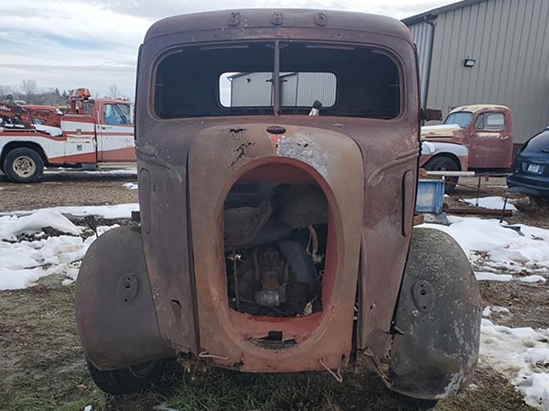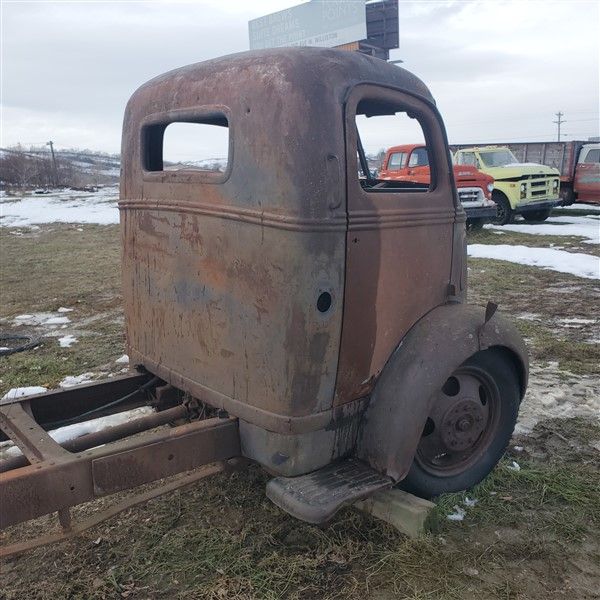 Here is another very hard to find 1940 Ford COE! Very little rust through on this one. There is a little rust on the bottom of both doors. Has the top dash trim, trim panel above the windshield and the backglass garnish. Also has the engine center cover. The front grill surround is there but will need work. The grill is not there but they are available. Real decent body. The front axle is not bolted in and best to ship with it on the back if you want it or just ship the cab if that is all you want. Don't miss this one! Good N. D. Title and delivery is available. $5,000