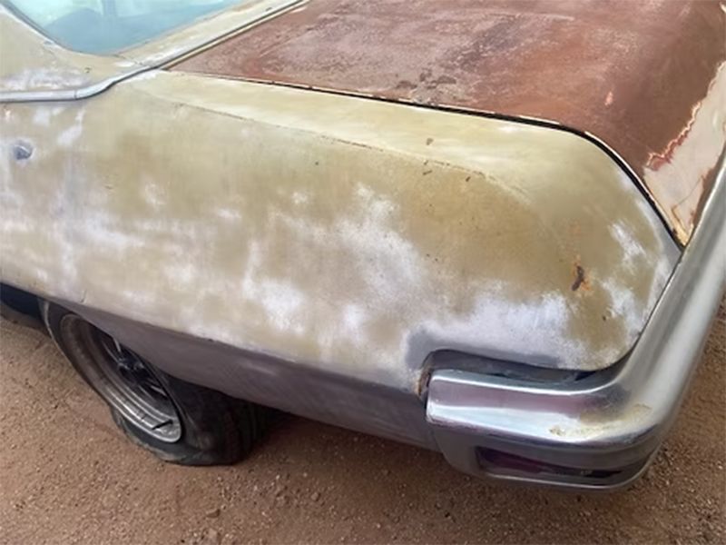 This GTO was sold originally by Westward Pontiac of Phoenix in early ‘72. The car is equipped with a 400 V8 (code WK) and correct Rochester Quadra-Jet 4bbl. carb (code # 7042263) coupled to a Muncie 4 speed trans and a 10-bolt 3.23 rear. The original color is Quezal Gold with a covert beige vinyl top. This is an original A/C car. Restoration was begun, but not completed. The engine, driveline, suspension, frame, and brakes (all mechanicals) have been rebuilt and the underside of the car has been painted, floors are really nice. The body and interior will complete the restoration on this classic desert-dry muscle car. Make it yours for $8,900.