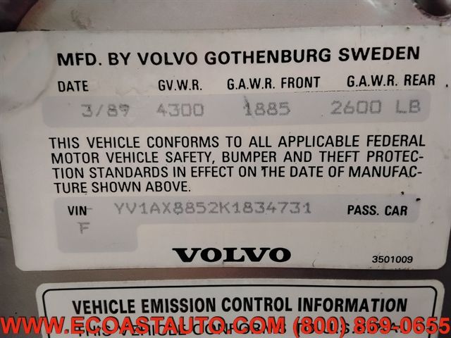 Details > 1989 Volvo 245 DL For Sale in Bedford, VA Private Party Sellers Click here to place your ad now! You auta tell them you saw the ad in AutaBuy when you call or email. 1/20 2/20 3/20 4/20 5/20 6/20 7/20 8/20 9/20 10/20 11/20 12/20 13/20 14/20 15/20 16/20 17/20 18/20 19/20 20/20 View 20 Photos View All Add to My Garage Parked in Your Garage! East Coast Auto Source Call: 540-586-5713 Contact Seller: I would like to: Make Offer Check Availability Ask A Question Request More Photos Check Financing Options Send a copy of this message to me Add this listing to my garage Send to Mobile Mileage 288,726 Exterior Color Silver Stock # M607RAAK Ad ID 105721636 VIN Y1AX8852K1834731 1989 Volvo 245 DL Description: ,AM/FM Radio,Cassette Player,Air Conditioning GOOD TITLE; RUNS; NORMAL WEAR AND TEAR; NEEDS FUEL PUMP; PARTS AVAILABLE; *RESTORATION VEHICLE* · Mileage: 288,726 · Color: Silver Price: $2,795. Mileage 288,726 Exterior Color Silver Stock # M607RAAK Ad ID 105721636 VIN Y1AX8852K1834731 Add to My Garage Parked in Your Garage! Call Seller Message Seller East Coast Auto Source Call: 540-586-5713 Contact Seller: I would like to: Make Offer Check Availability Ask A Question Request More Photos Check Financing Options Send a copy of this message to me Add this listing to my garage Offered for sale by East Coast Auto Source Call 540-586-5713 BEDFORD, VA Mention AutaBuild.com when you call. Price: $2,795. Offered for sale by East Coast Auto Source Call 540-586-5713 BEDFORD, VA Mention AutaBuild.com when you call. [entire inventory] Ask Auta Intelligence The first collector-car AI built directly into a classic car marketplace When was this model first introduced? What transmission options did these offer? Tell me the history on this model What engine options did these come with? How many of these were produced? Where is this located? What makes this model desirable to enthusiasts? What trim levels were available for this model? Which engines were most common for this year? Which years was this body style produced? Can you show me more repairables for a similar price? How far is this from me? What movies featured cars like this? How many 245 DLs were produced in Silver? What colors did these come in? What makes this model year special? What nicknames does this model have? What does this VIN number tell me? What factory options were available on this model? Do you have a similar car to sell? List It Now! Questions about this car? Ask Auta Intelligence for production numbers, available options, etc. · Subscribe to AutaBuy! · Send a Gift Subscription Notice to a Friend
