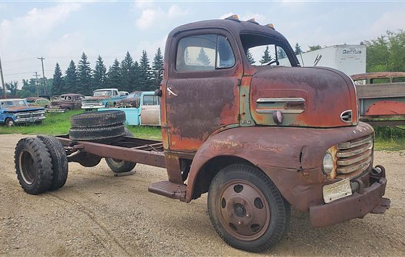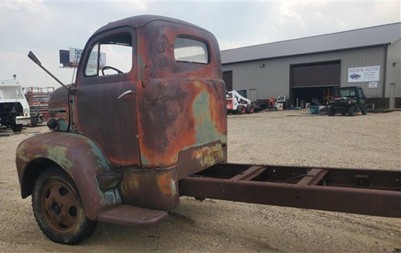 This F-6 Cabover has just come in. It has a flathead 6, 4 speed and 2 speed axle. Quite complete. This truck has lots of bumps and bruises from 75 years of use. Has rust above the windshield and needs some work on the back of the cab. Floors and floor structure look read good. Motor cover is there. Has the chrome grill. Shows 58,000 miles. Good North Dakota Title and we will assist with delivery. $3,500