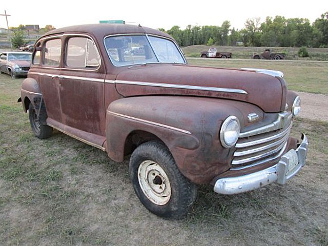 Nice four door Super Deluxe for restoration. Has the flathead V-8 motor and standard transmission. Has some dents from 70 plus years of use but all in all not bad. Has rust in the left rear door. Otherwise quite solid with solid floors. A good door will be included with the car. Good North Dakota Title and delivery is available. Stock #1257