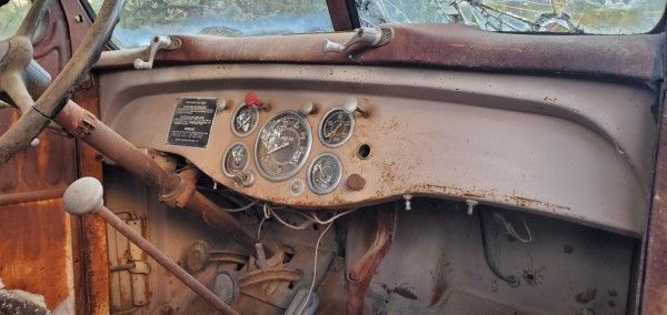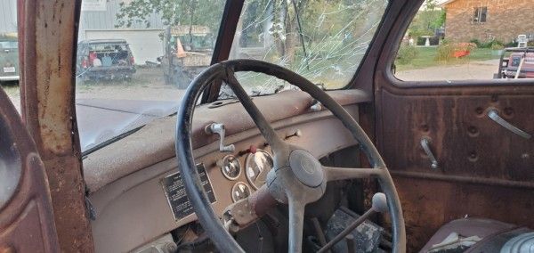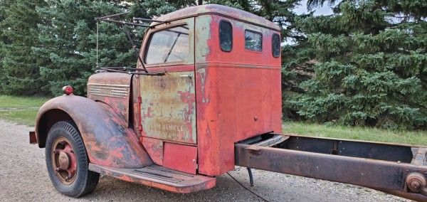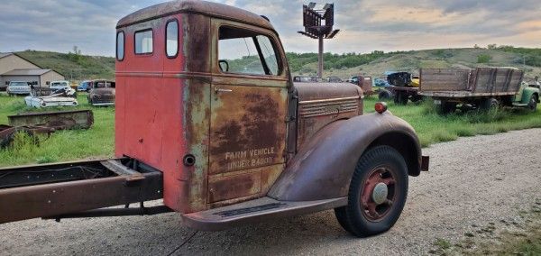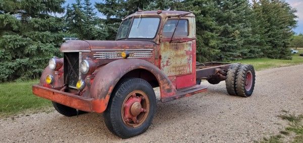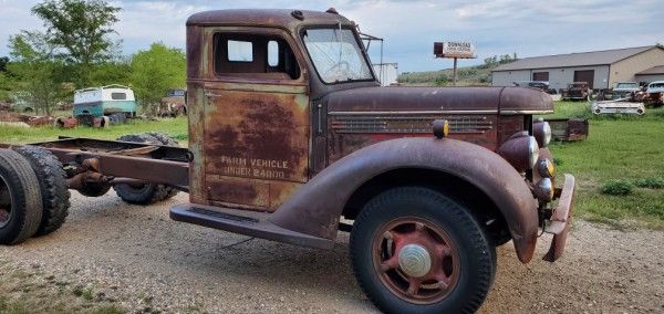 This is the Model 404 with the flathead 6 motor, 4 speed transmission and 2 speed rear axle. We never turned the motor. Has a little rust above the windshield on the inside. Solid floors and a very nice body on this one. Will need some grill work and a few bars replaced. Don't miss this great truck! It's the only 5 window Diamond T we have had. Good North Dakota Title and we will assist with delivery.