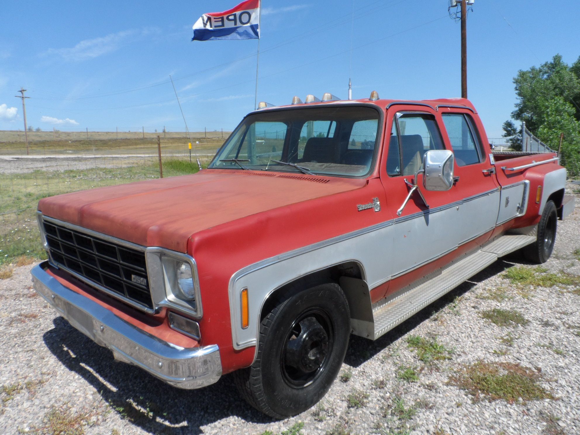 ![]() Click on the image for a larger picture. 1976 CHEVROLET SILVERADO 1 TON CREW CAB DUALLY 2WD SORRY THIS PICKUP HAS BEEN SOLD! Keep watching our website, as our inventory is always changing. You are Not starting with a rusted out truck. If you are looking for a good solid square body Chevy pickup, This is just the truck for you to build your way. Here's a Square Body Chevy Dually Project Truck. 1976 Silverado, Chevy 1 Ton, 4 Door, Crew Cab Dually. 2 Wheel Drive. I was able to get the truck running, (by hot wiring it) Had is running for a little while, has a 454 V8, (But engine Runs poorly), Automatic Transmission. This truck has all the Silverado options, A/C, Title Wheel, Cruise, Power Windows, etc. Goose neck hitch, with an awesome rear bumper. Pretty clean body, with only minor rust. Very few dents. Windshield is cracked, rest of glass is good. Split bench front seat. Interior is old, and tired, but is original. This truck needs a good rebuild. Truck will need some wiring work under the dash. YES, YOU WILL GET A CLEAR SOUTH DAKOTA TITLE, AND WE DON'T CHARGE YOU ANY EXTRA TITLE FEES EITHER. PRICE JUST LOWERED TO ONLY $3,995. WAS $4,995. Located in Rapid City,South Dakota. Shipping has been really slow, and shipping prices are all over the board. But, we can help you get the truck shipped. Call Bill @ Motion Unlimited Classic Sales and Museum. 605-348-7373. We will be adding more photos soon. AutaBuy sold this car to a buyer in Utah. Made the new owners very happy! They had been looking for a truck like this for years! And we sold it cheap!