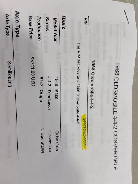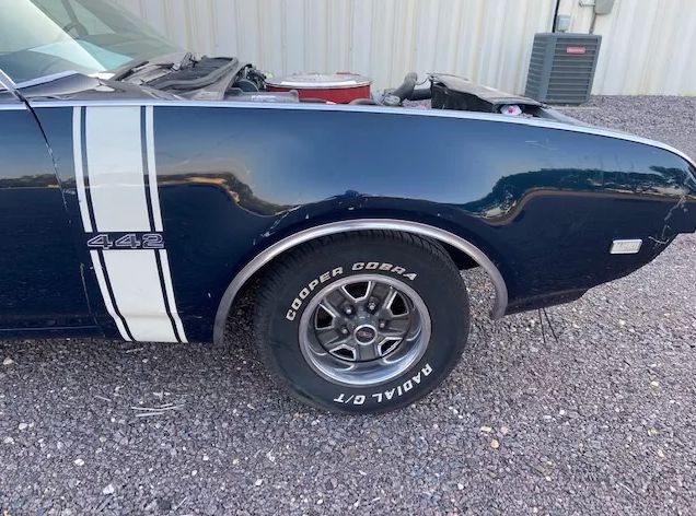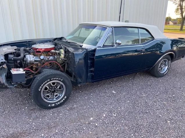 Real deal ‘68 cutlass 442 numbers matching AC convertible with front end damage as shown in our photos. Power is supplied by the cars original 10.5 :1 - 400 V8, Turbo Hydro 400 trans and 3.23 12 bolt posi. The car starts right up, runs, drives, steers, stops, and handles good. This is a desert-dry, rust-free classic muscle car project with real originality and great potential. Take some time to study our detailed photos, listen to the engine start, and watch it drive down the street and you’ll agree this is a nice piece!