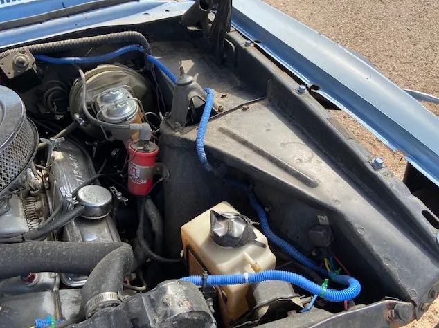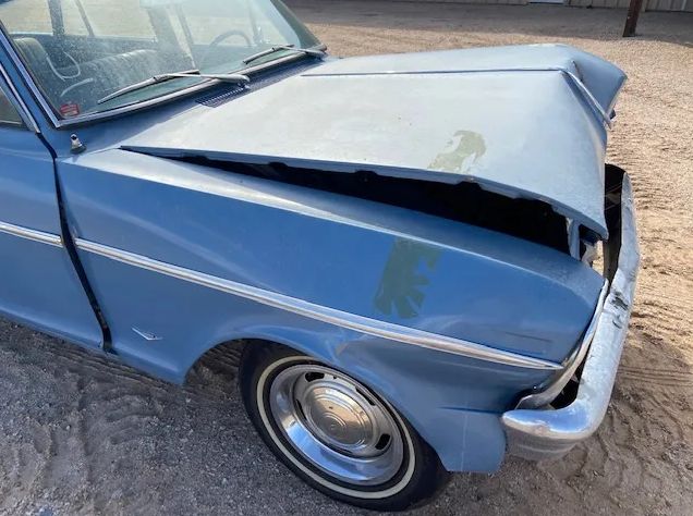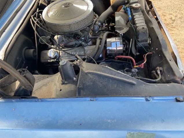 Front damage up and over the bumper as pictured, needs a pull for cowl / door alignment plus sheet metal as shown. Power is supplied by a 350 V8 w/ TH 350 trans and a 10-bolt rear end. This is a nice, solid little cruiser project with clean sheet metal, floors, and a very nice interior