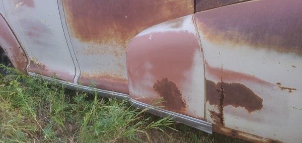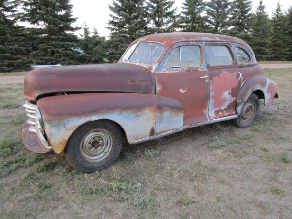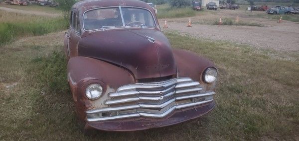 This is the Fleetmaster Sport Sedan model. Has a non-running 6 cylinder motor and standard transmission. It will need front floor work but the rest of the floors look pretty good. Quite complete other than the front bumper which is gone. Has some lower rust in the front fenders. Otherwise looks quite good for dents and rust. Has the radio, clock, all glass and all garnish mouldings. Good North Dakota Title and we will assist with delivery, $2,200