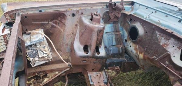 Nice project hardtop with minimal rust and not bad for dents. The motor and transmission have been pulled. Has all the glass and seats are there. Decent trim. Does have a rust spot from acid below the battery tray. Good North Dakota Title and we will assist with delivery. $1,900.