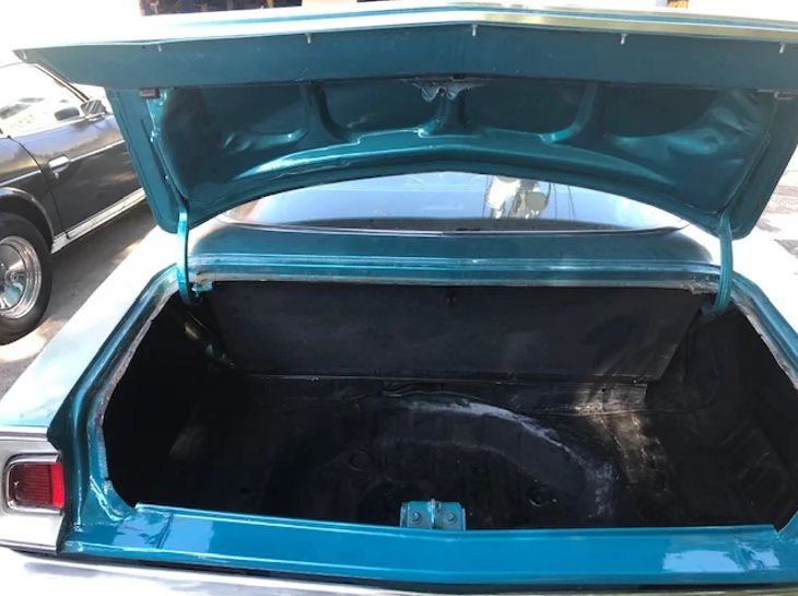 This R/T comes with the holy grail of color combinationsLL1 body with C6W white bucket seat and console interior. LL1 is a medium dark turquoise metallic color, and since the interior code is C6W, that means it's a white deluxe bucket seat interior.